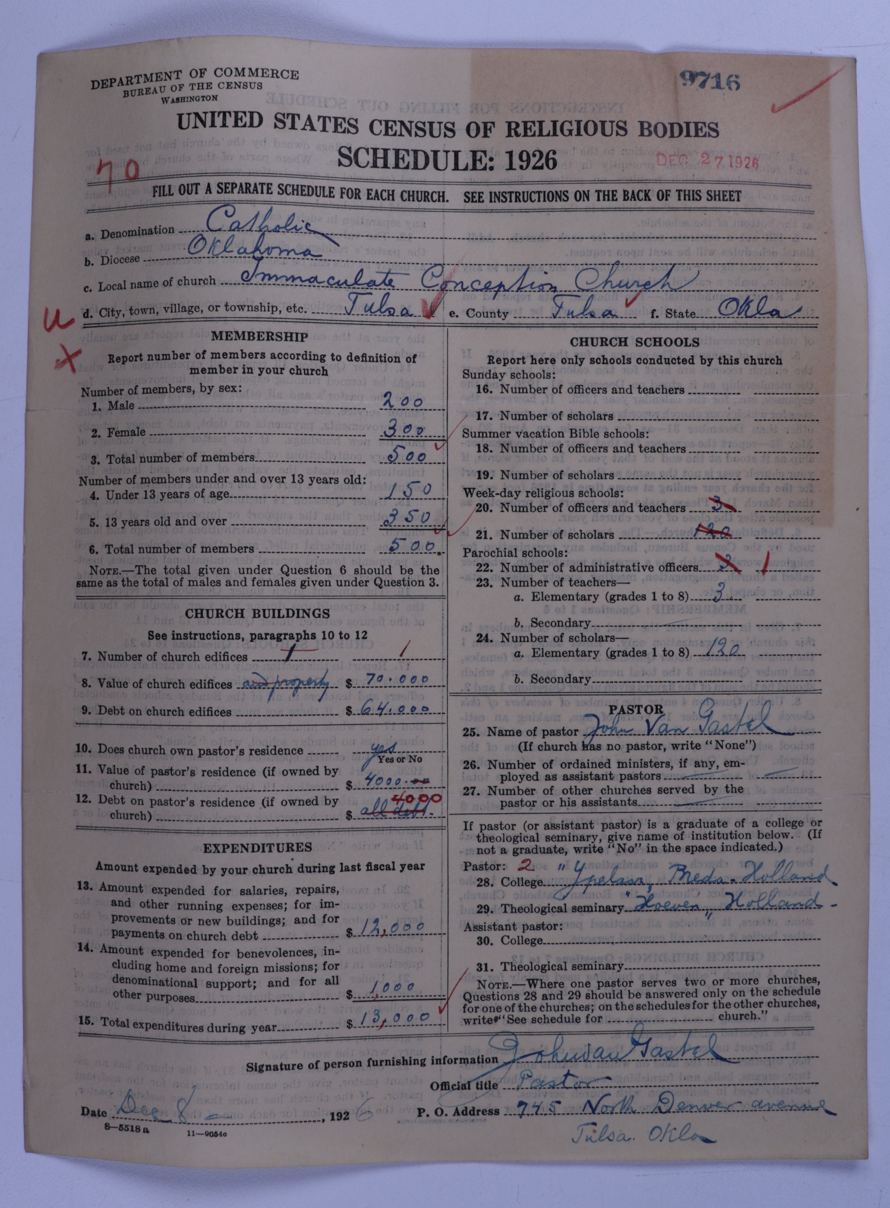 - Roman Catholic Church: 9716