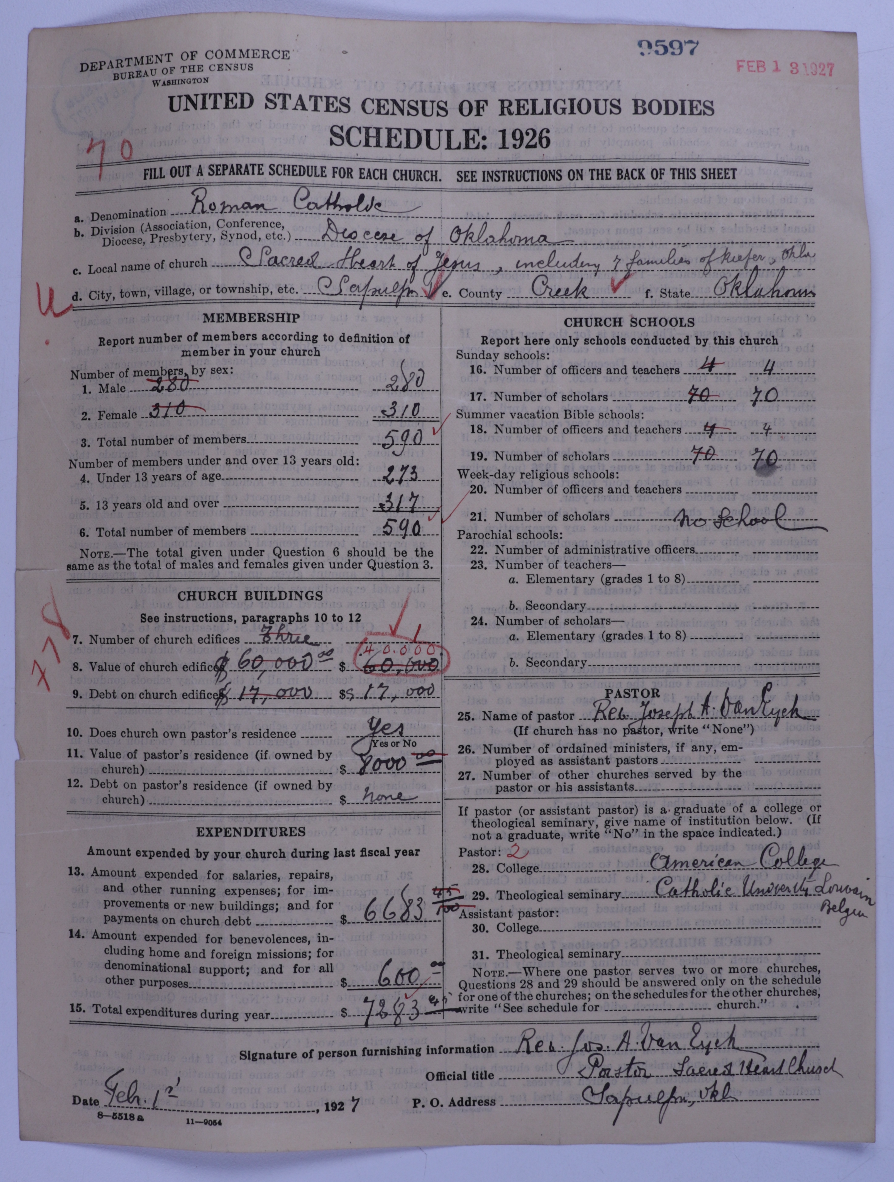 - Roman Catholic Church: 9597