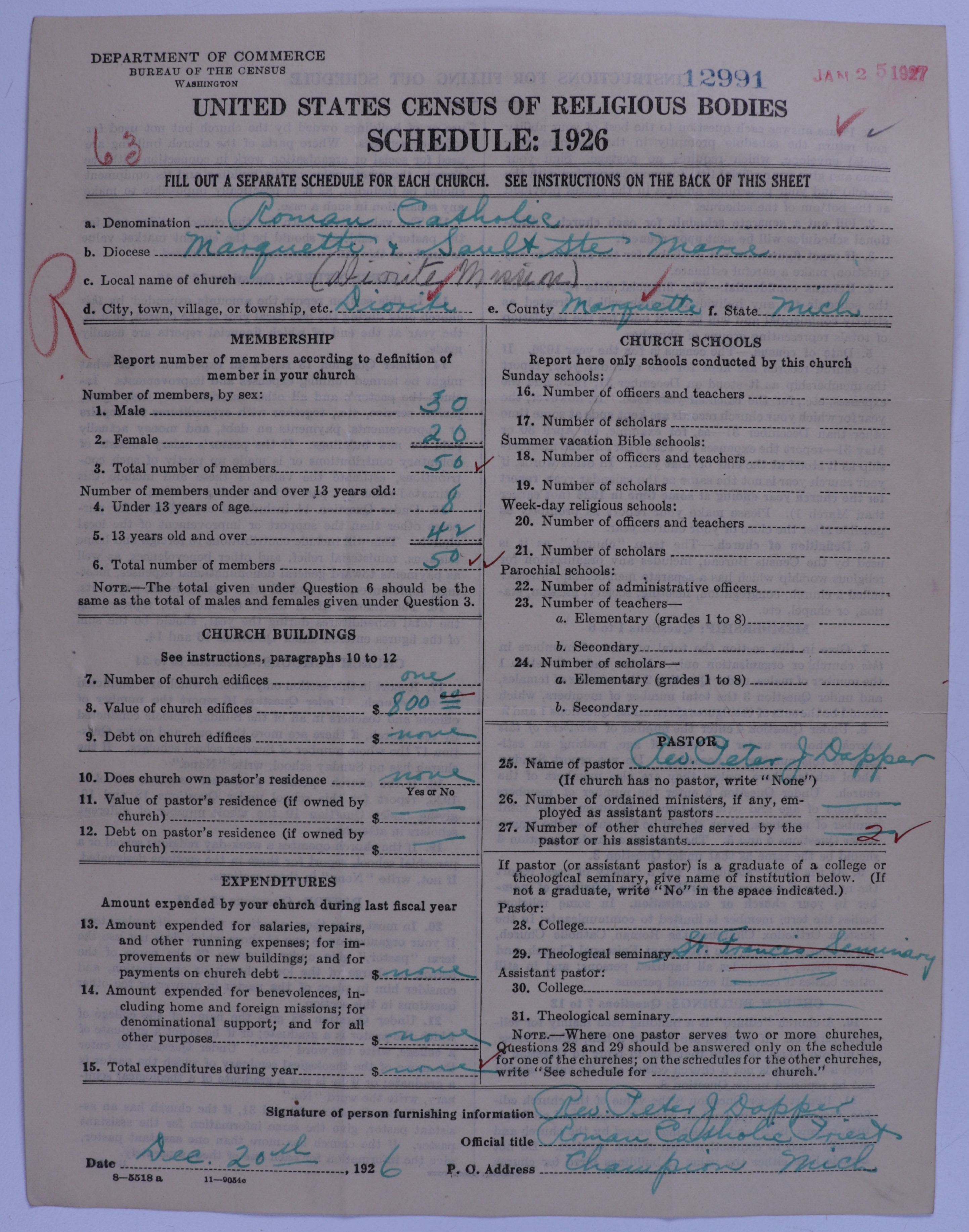 - Roman Catholic Church: 12991