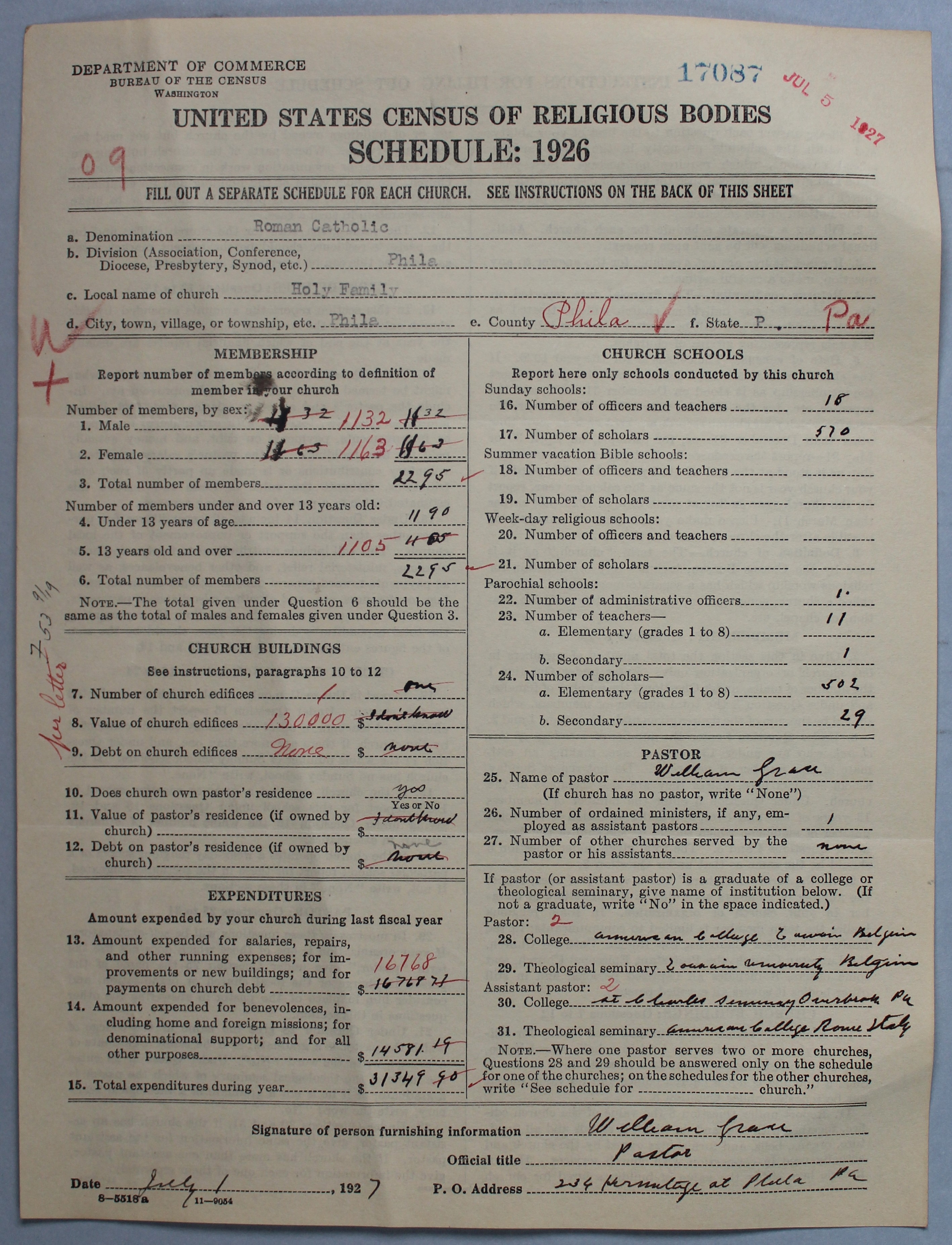 - Roman Catholic Church: 17087