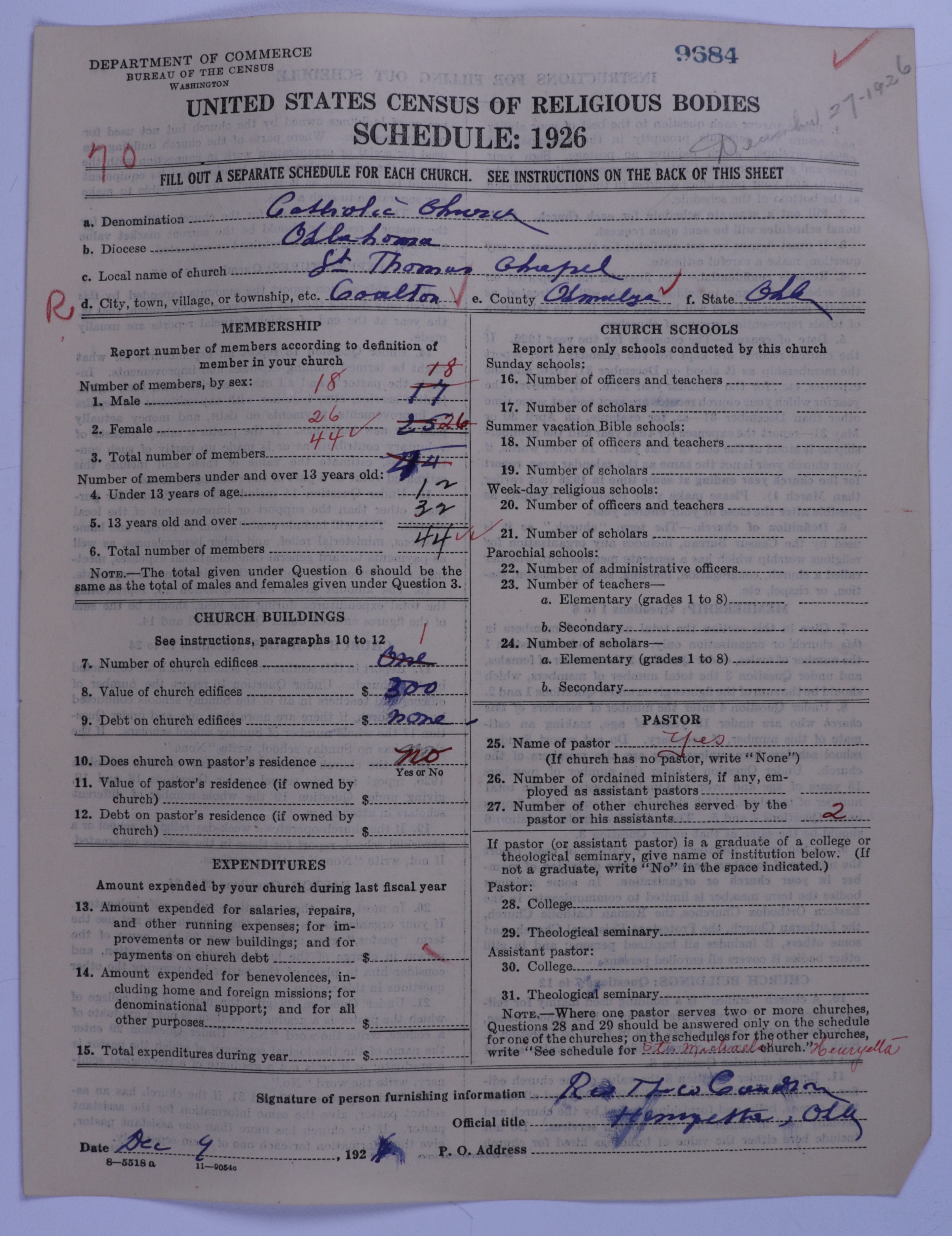 - Roman Catholic Church: 9684