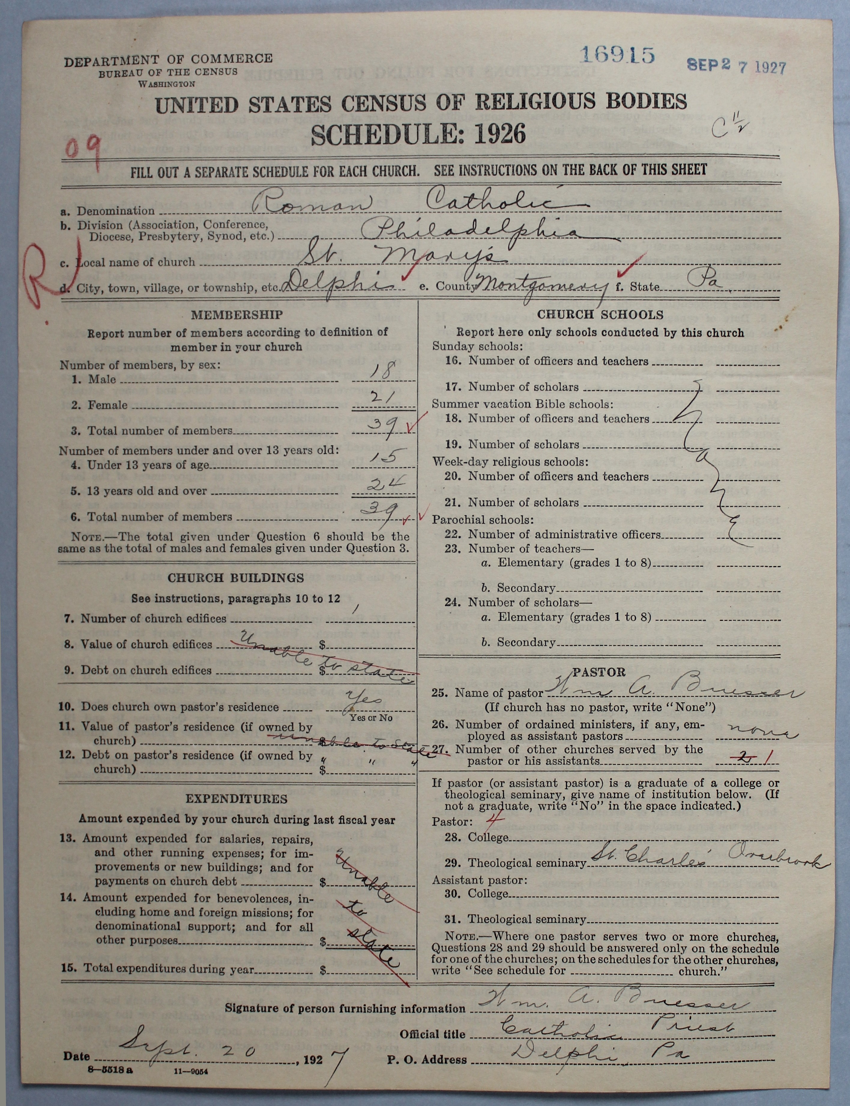 - Roman Catholic Church: 16915