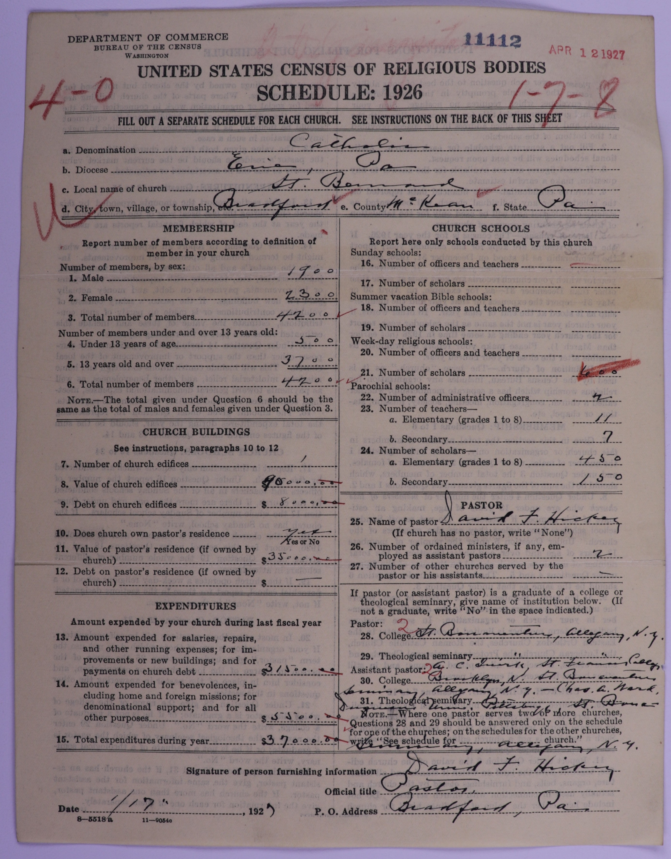 - Roman Catholic Church: 11112