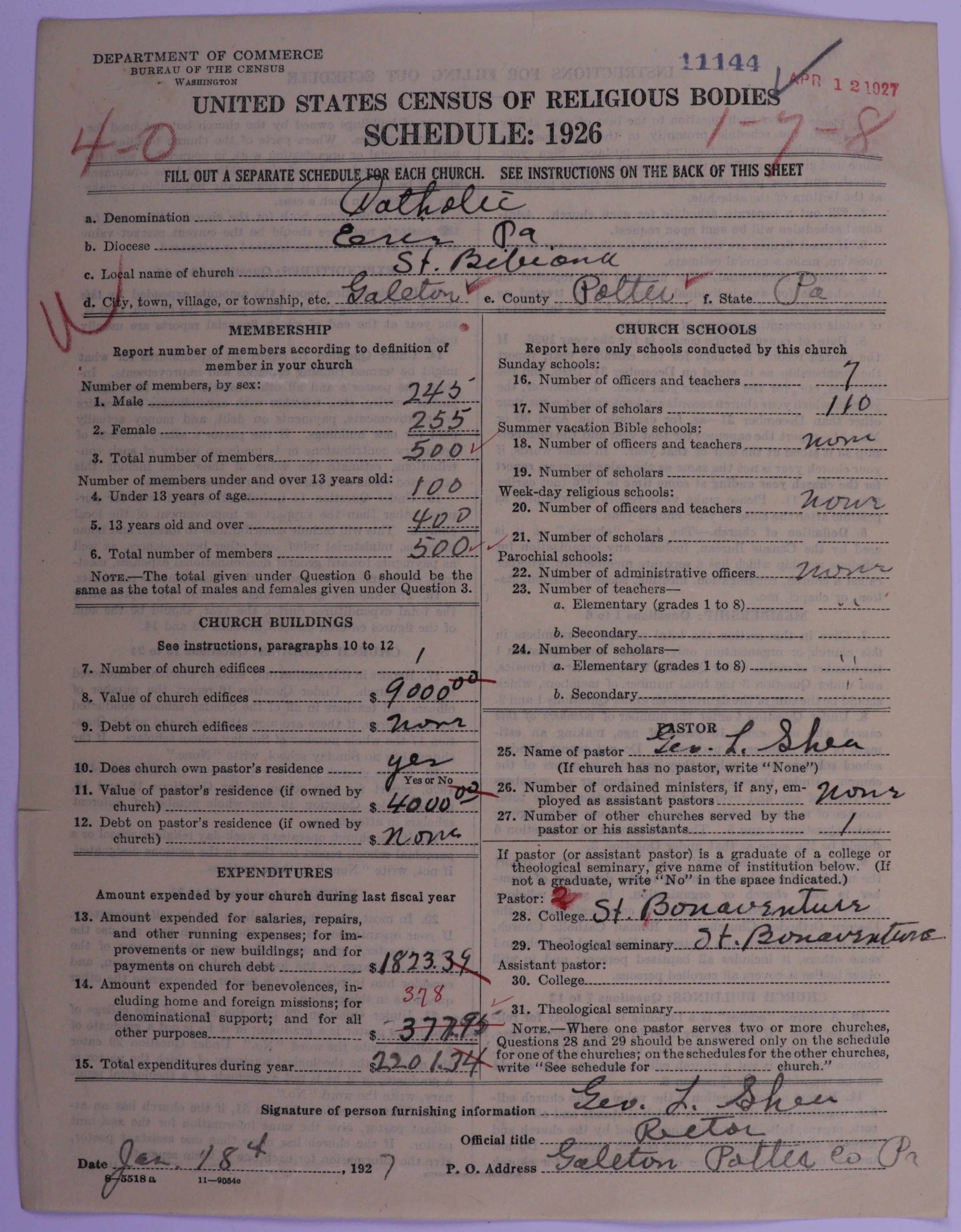 - Roman Catholic Church: 11144