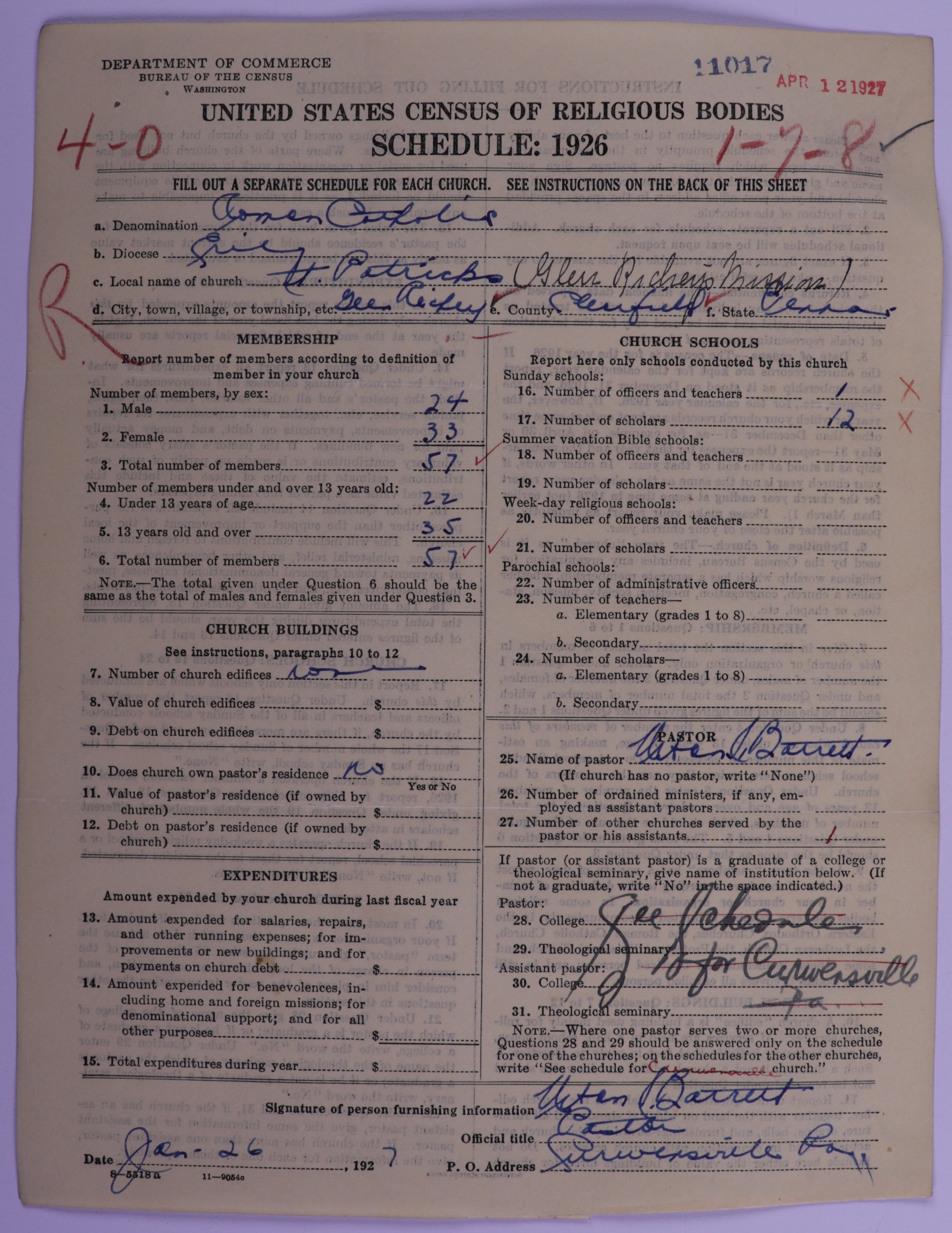 - Roman Catholic Church: 11017