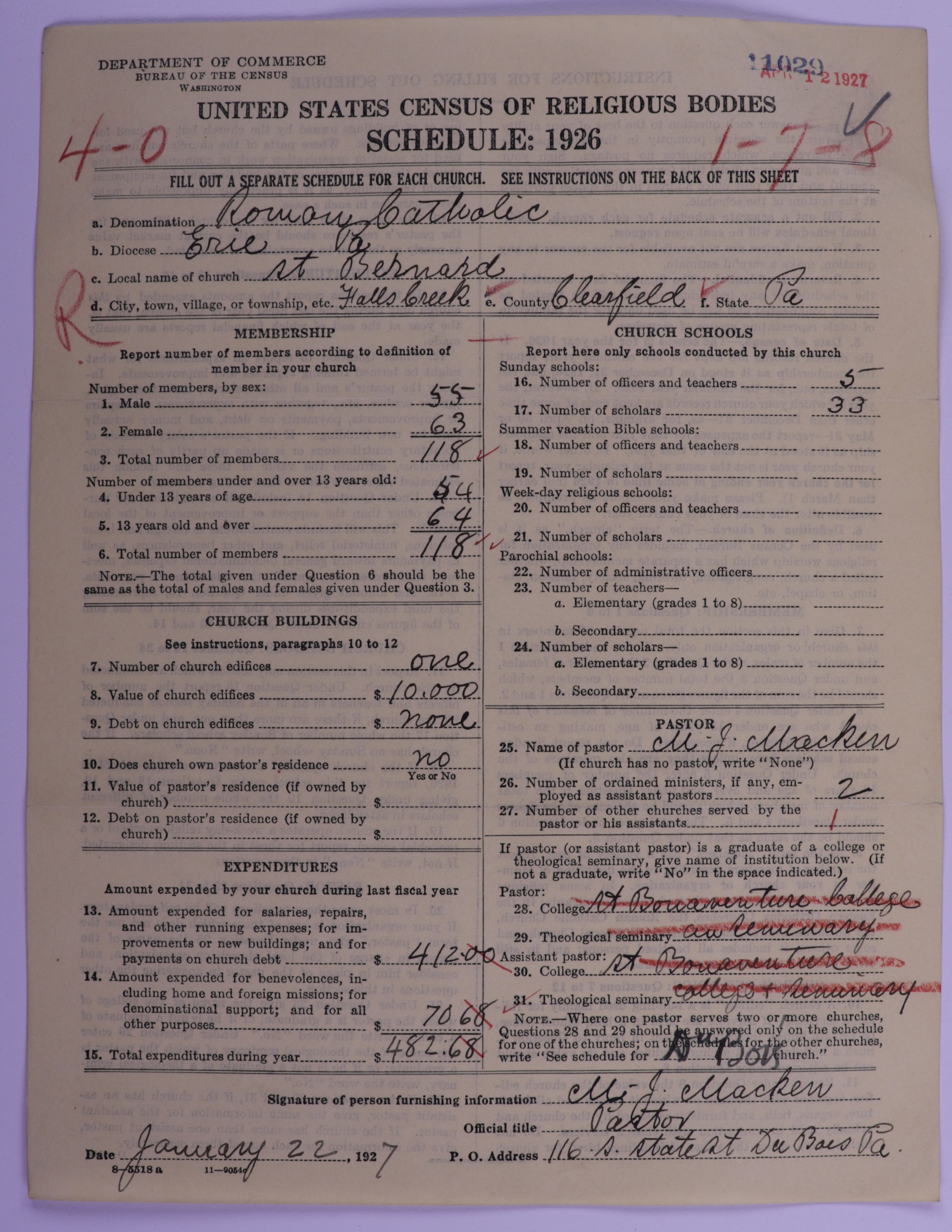 - Roman Catholic Church: 11029