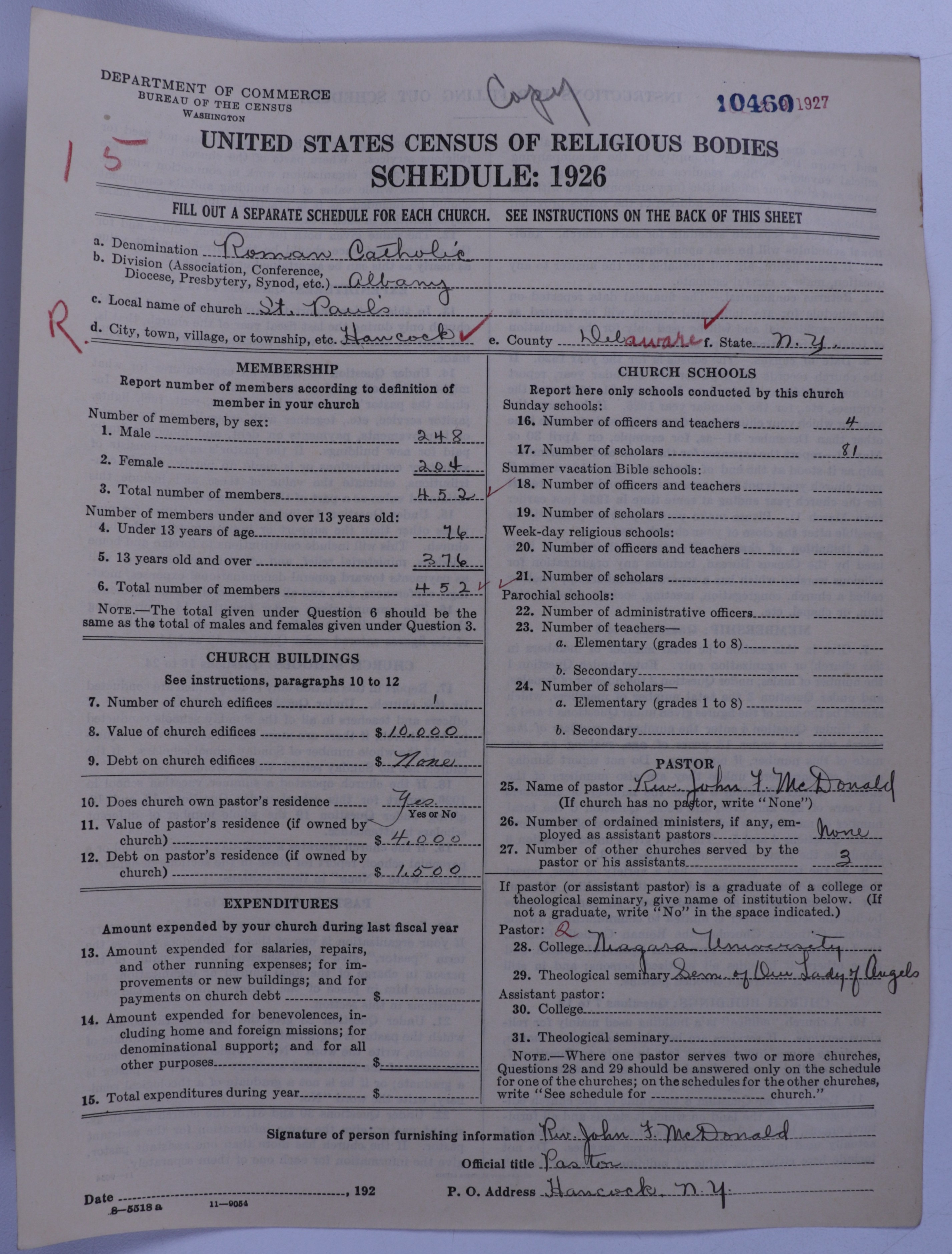- Roman Catholic Church: 10460