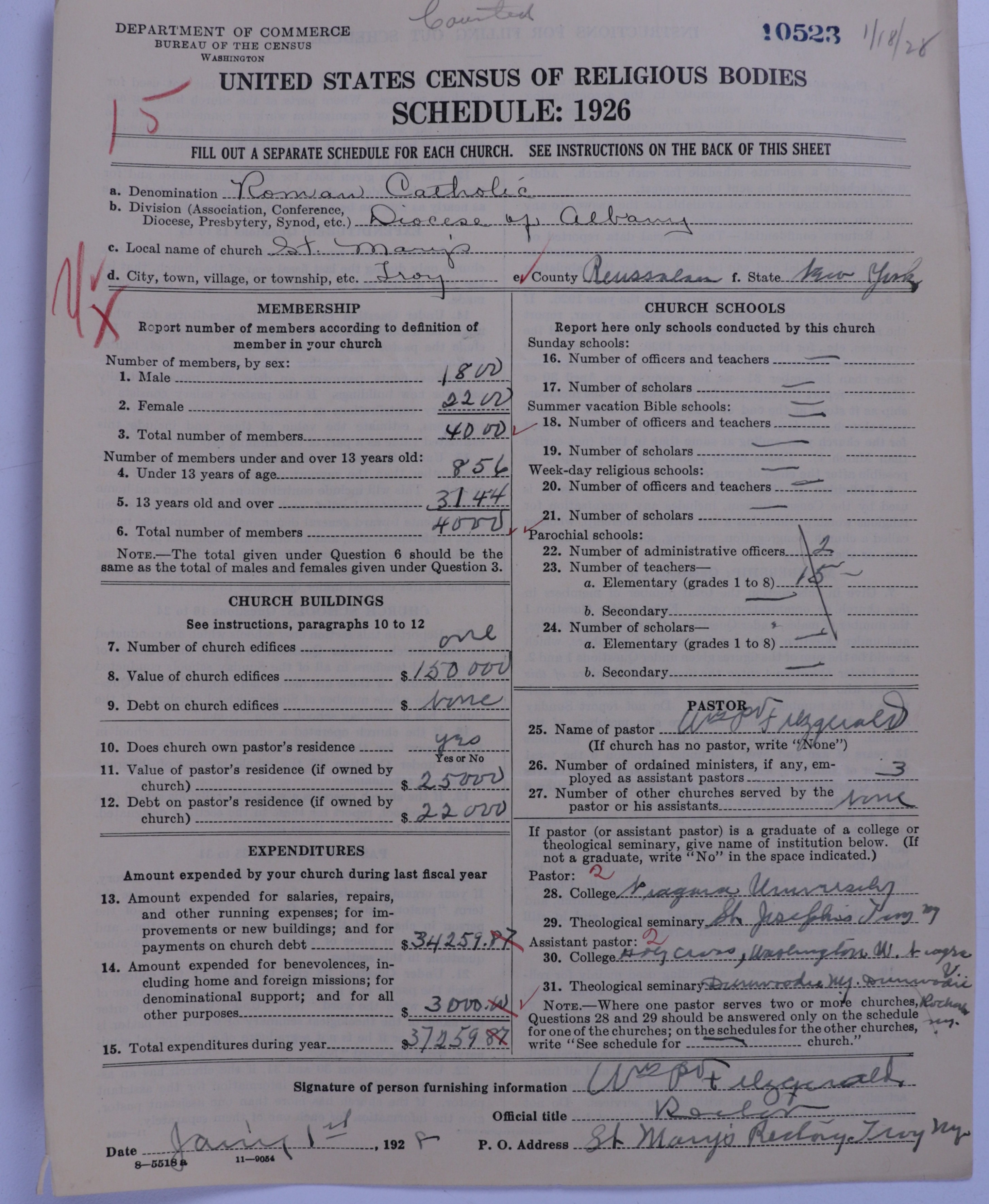 - Roman Catholic Church: 10523