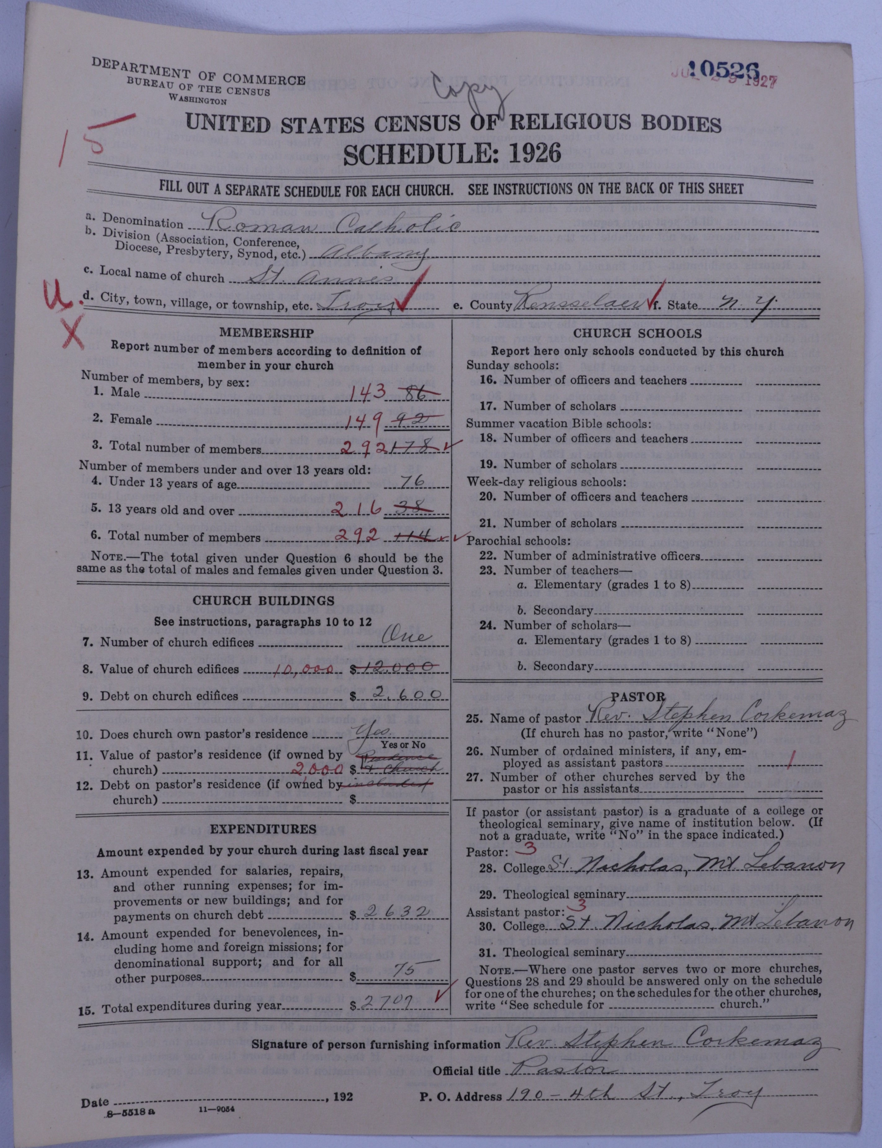 - Roman Catholic Church: 10526