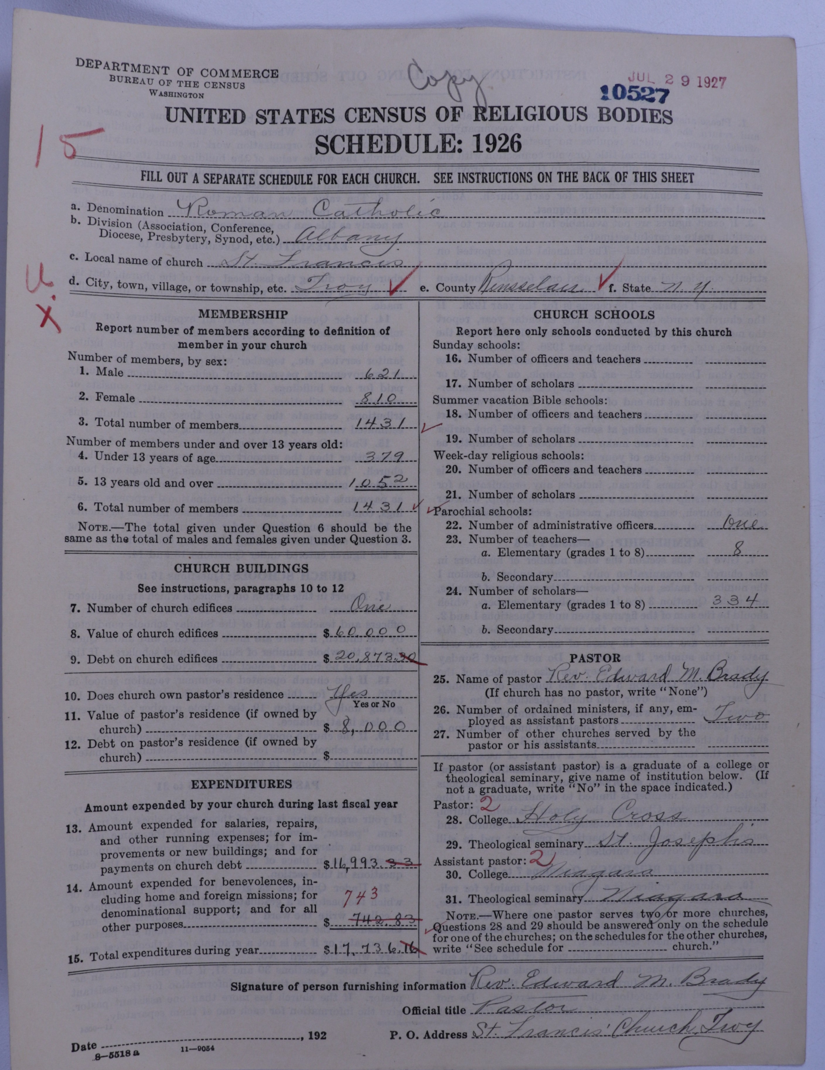 - Roman Catholic Church: 10527