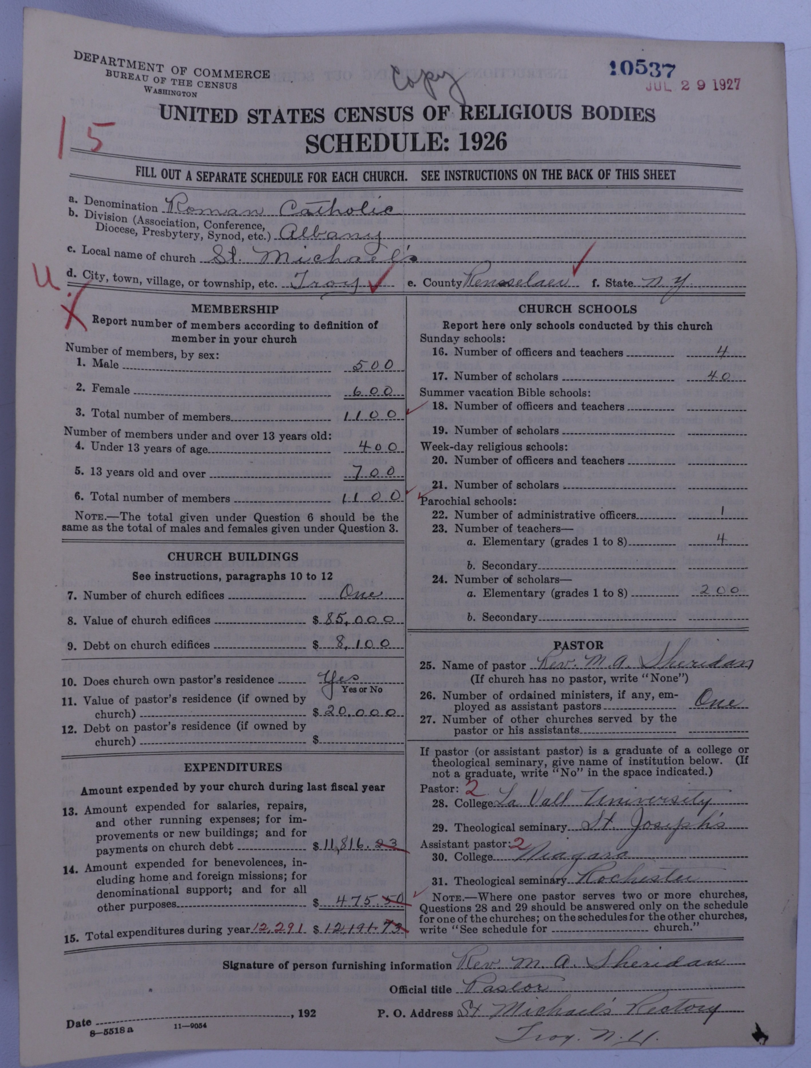 - Roman Catholic Church: 10537