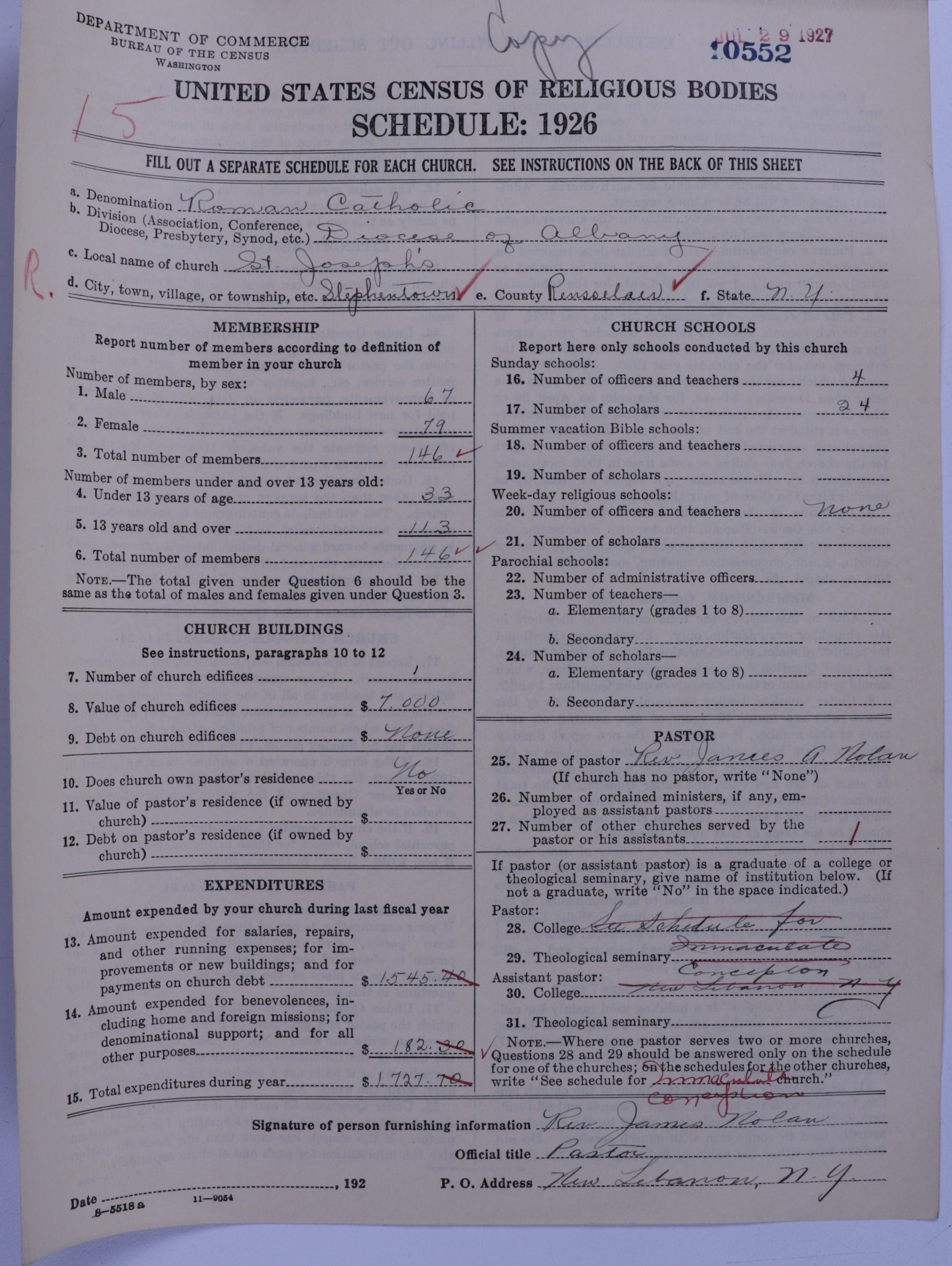 - Roman Catholic Church: 10552
