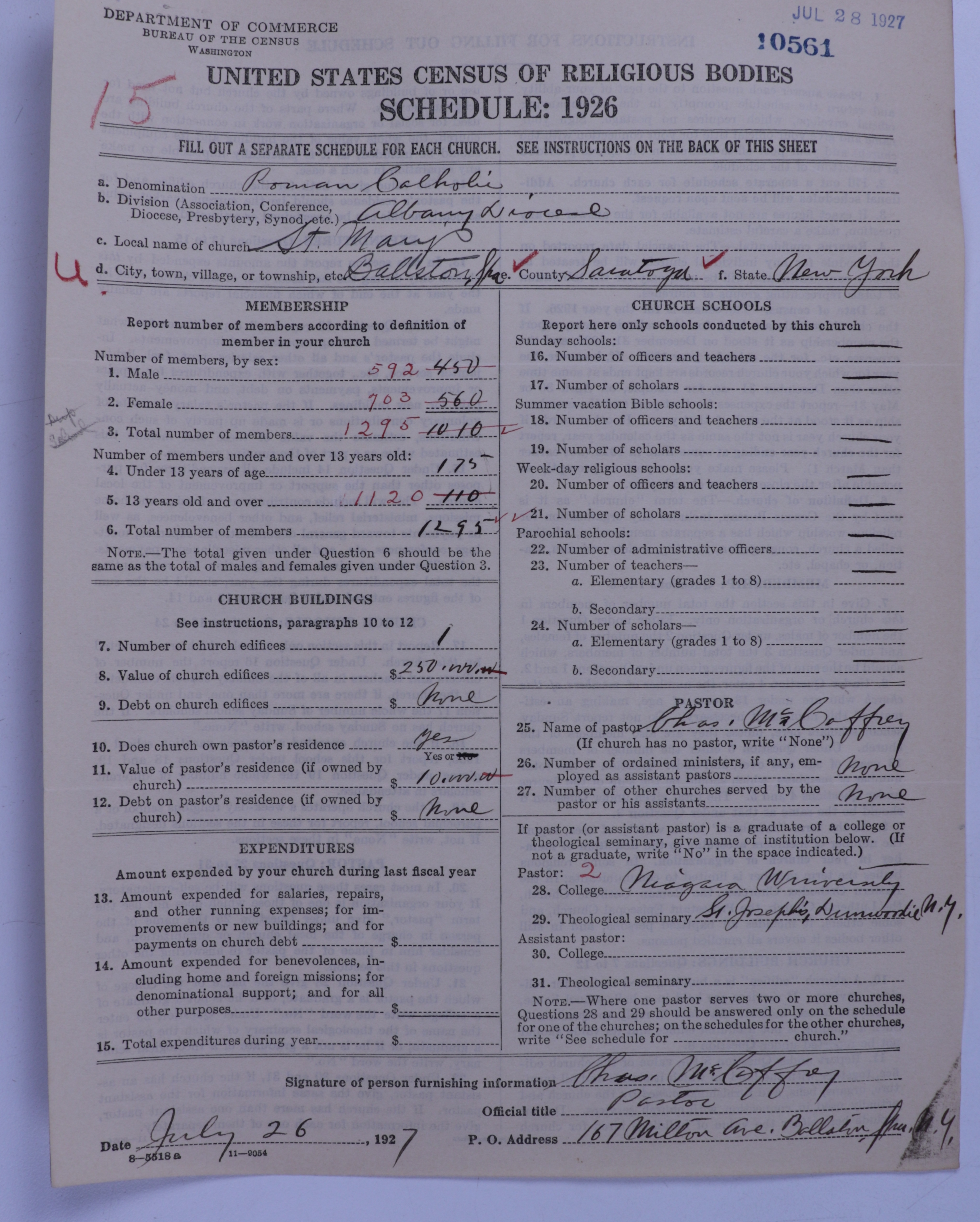 - Roman Catholic Church: 10561