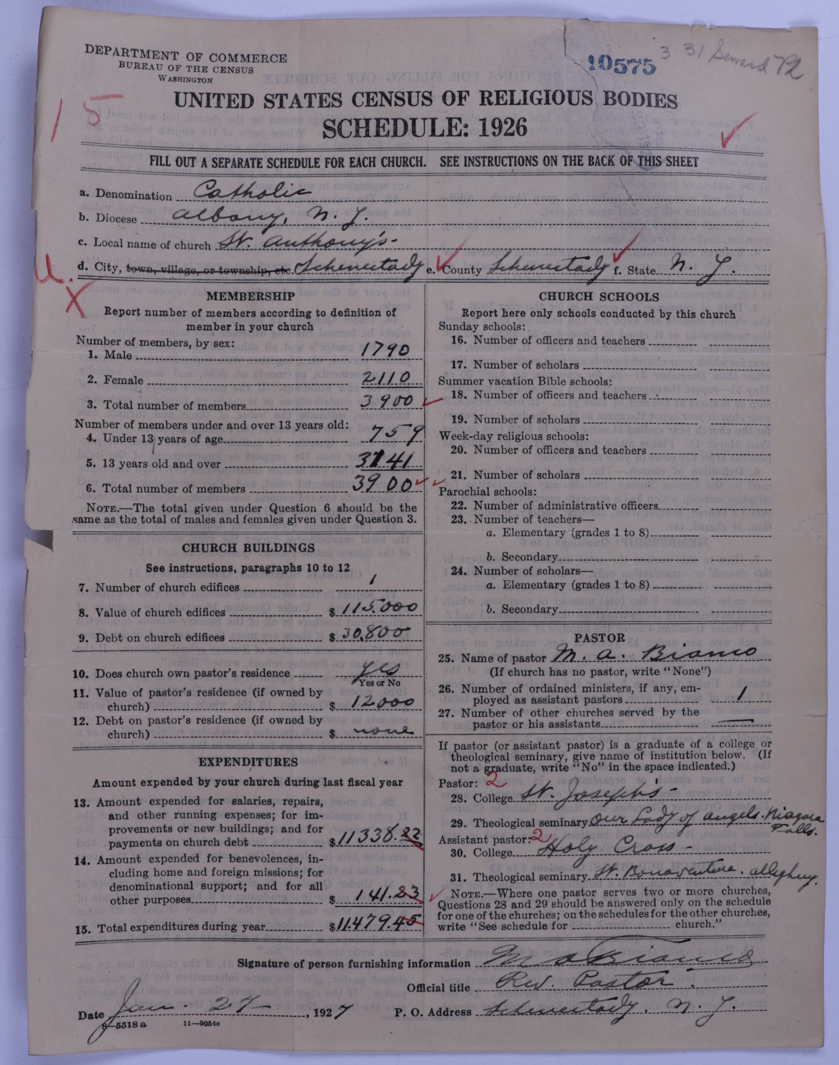 - Roman Catholic Church: 10575