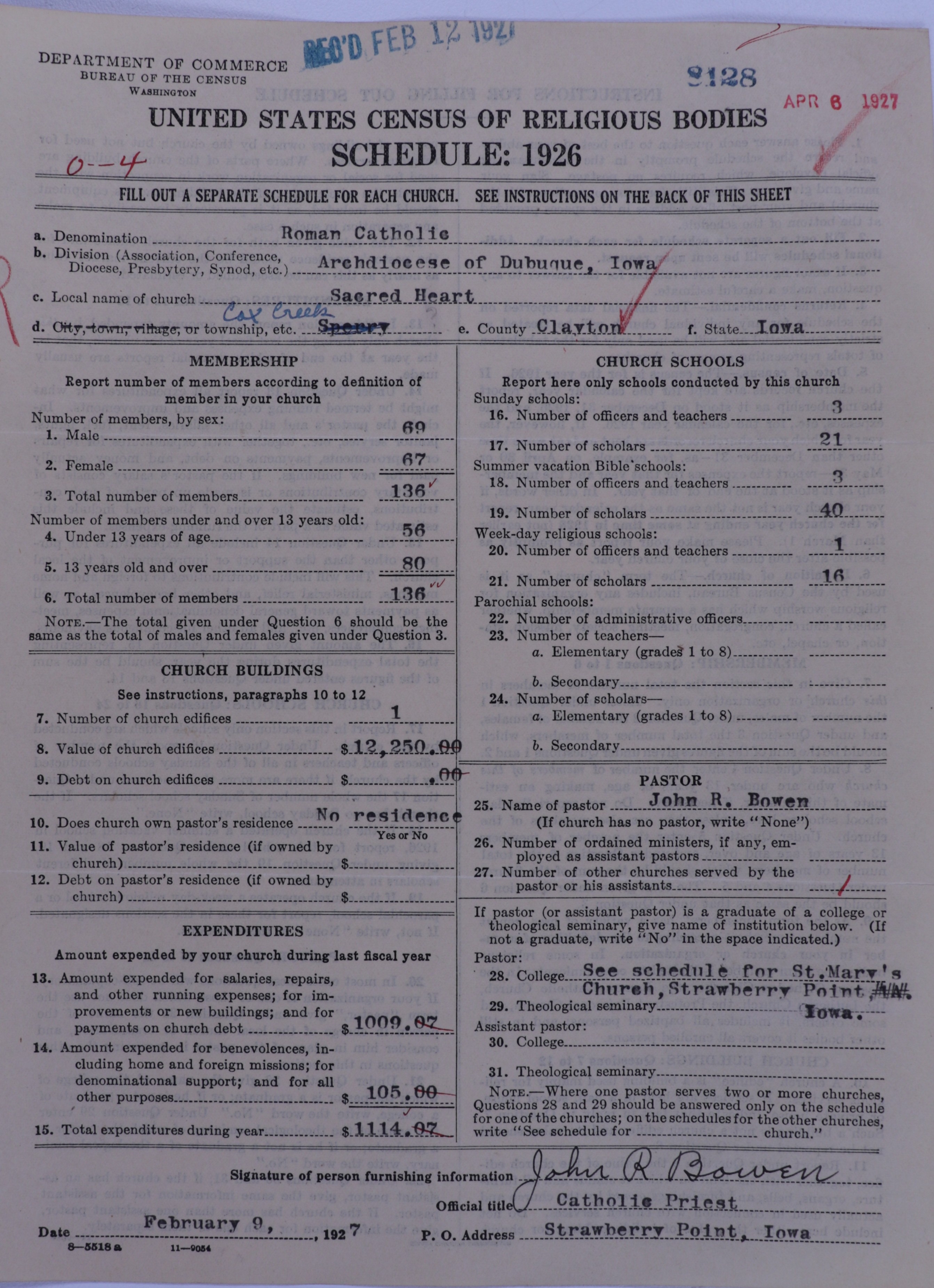 - Roman Catholic Church: 8128