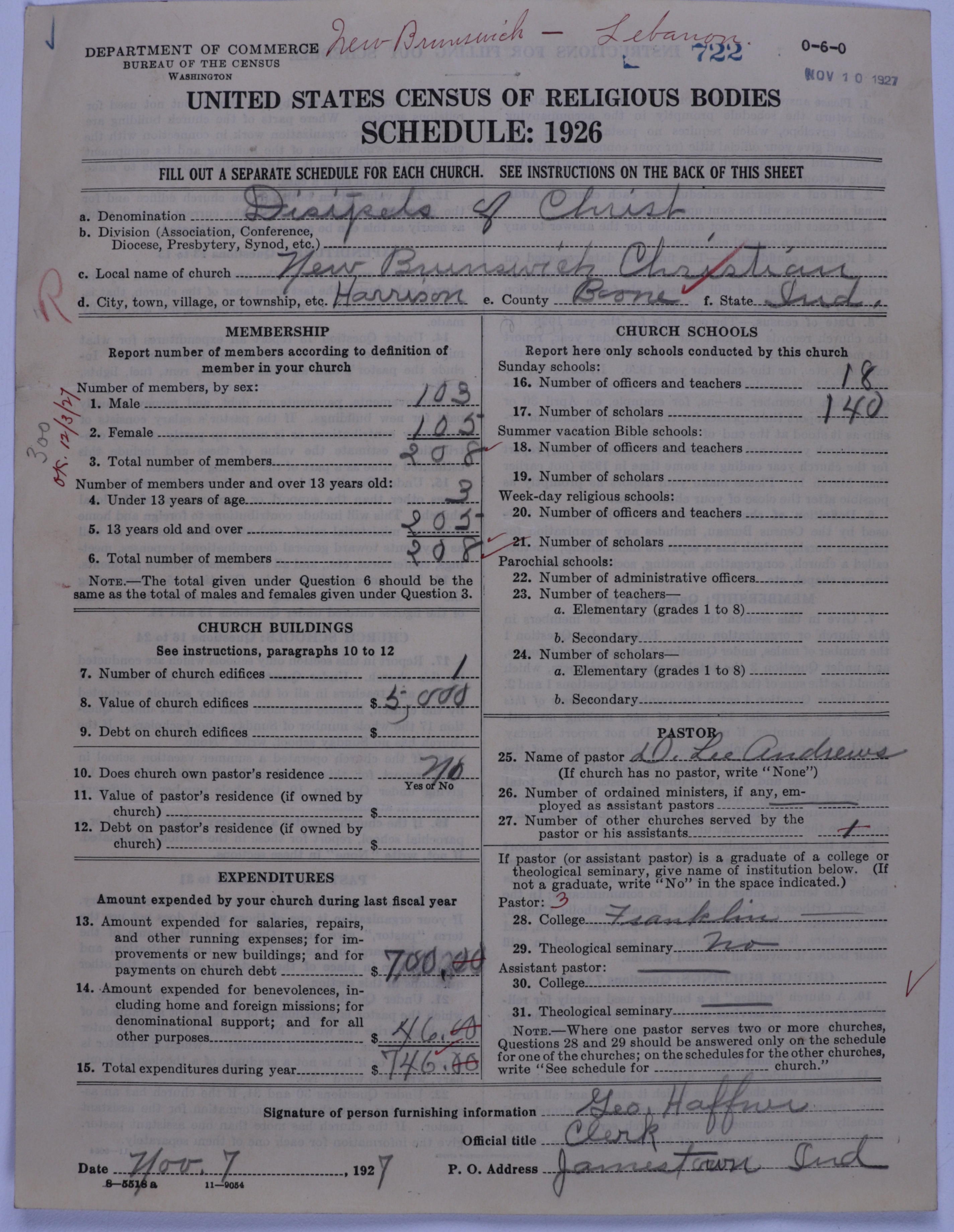- Disciples of Christ: 722