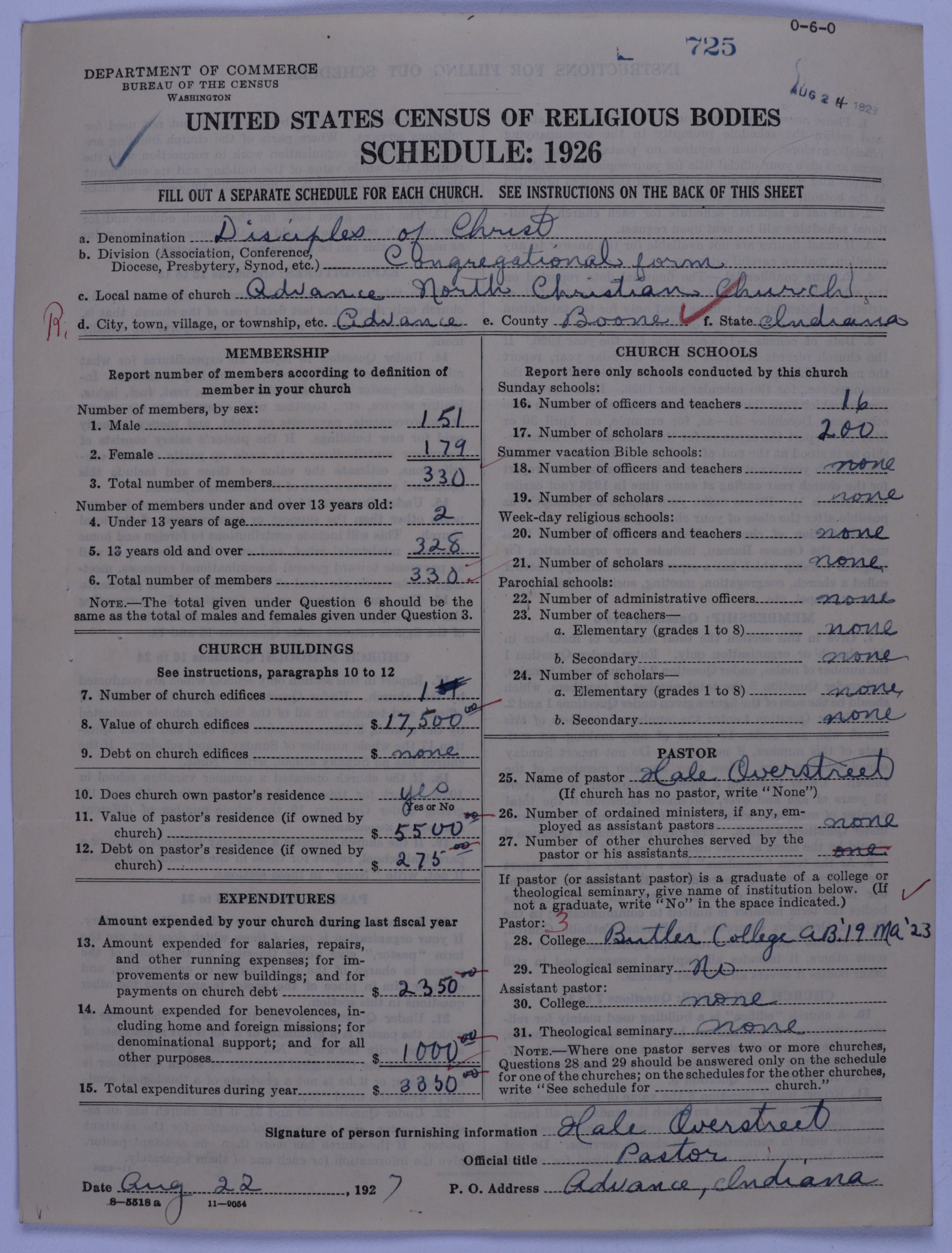 - Disciples of Christ: 725