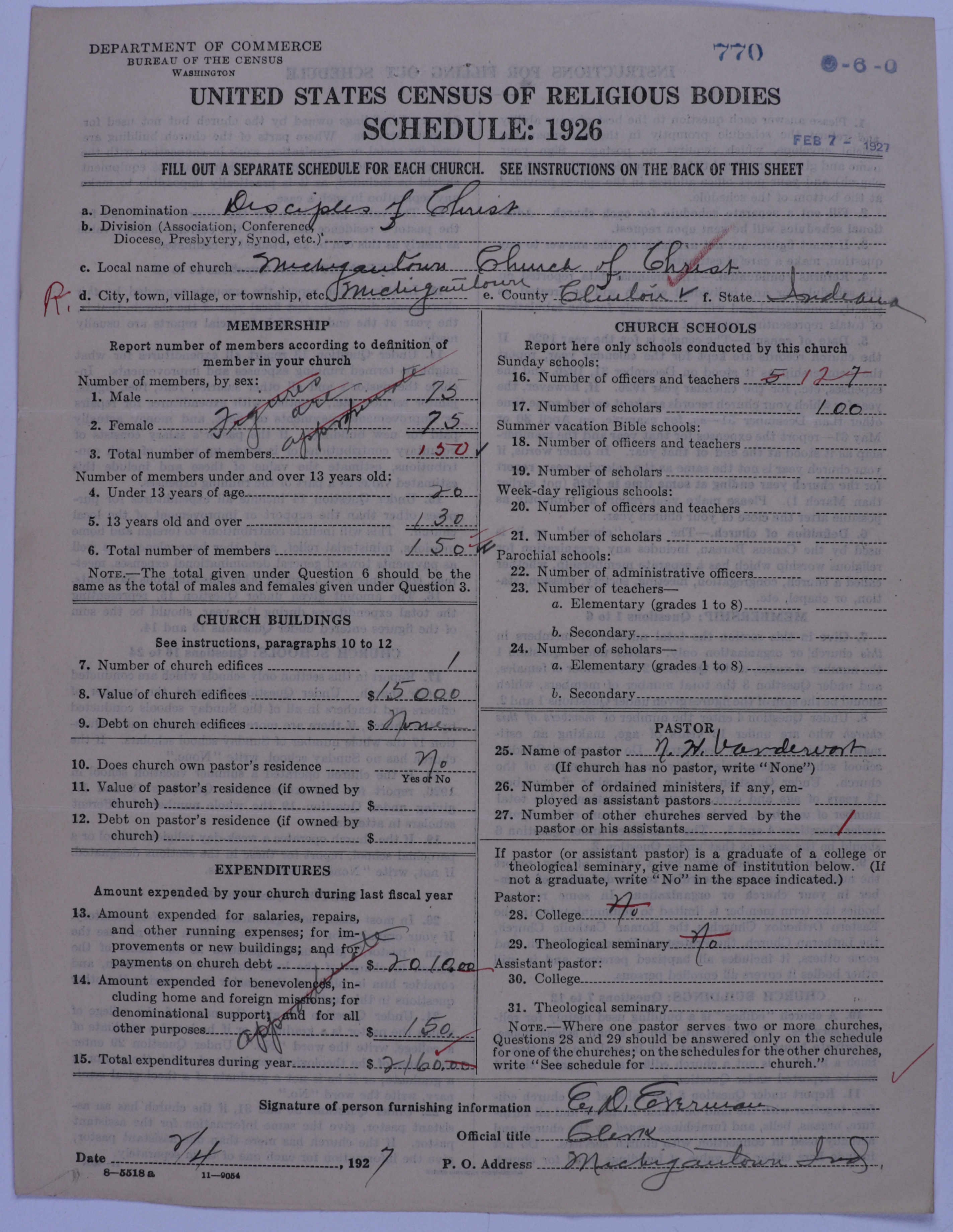 - Disciples of Christ: 770