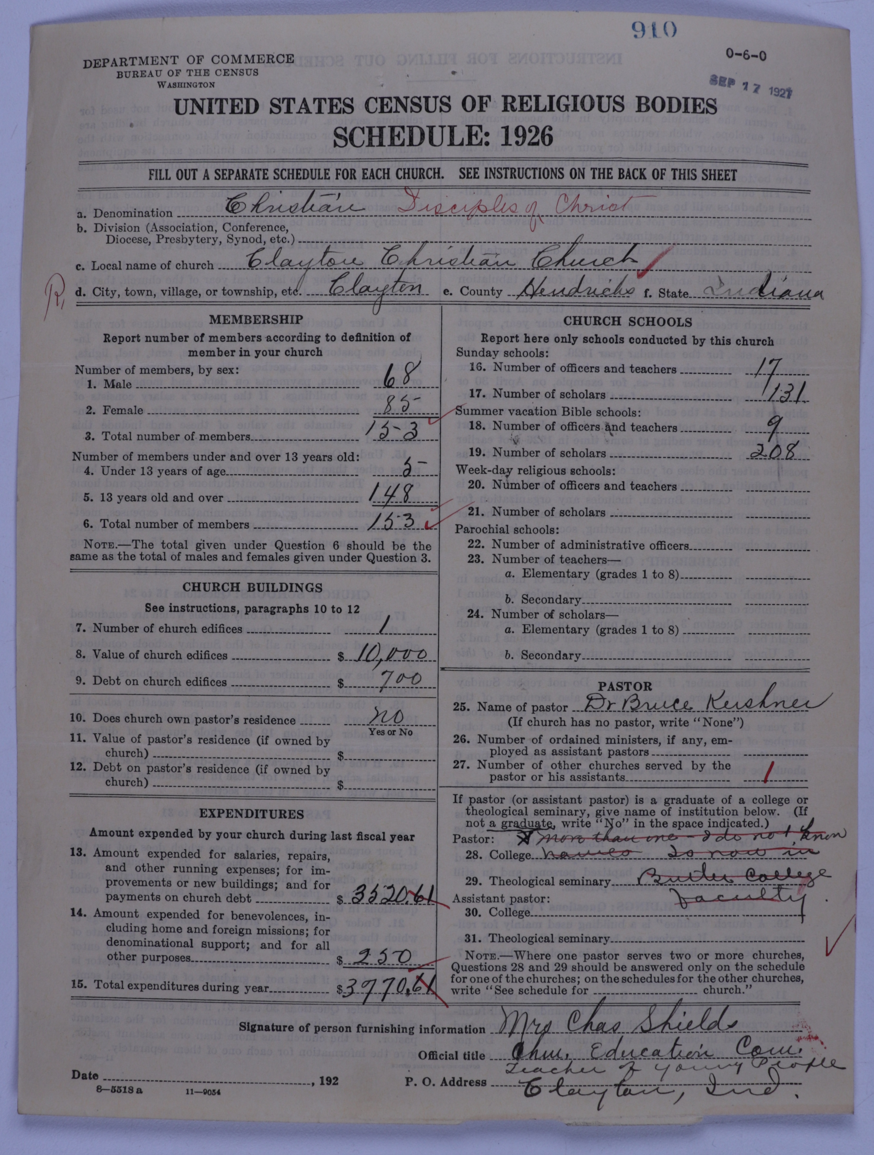 - Disciples of Christ: 910