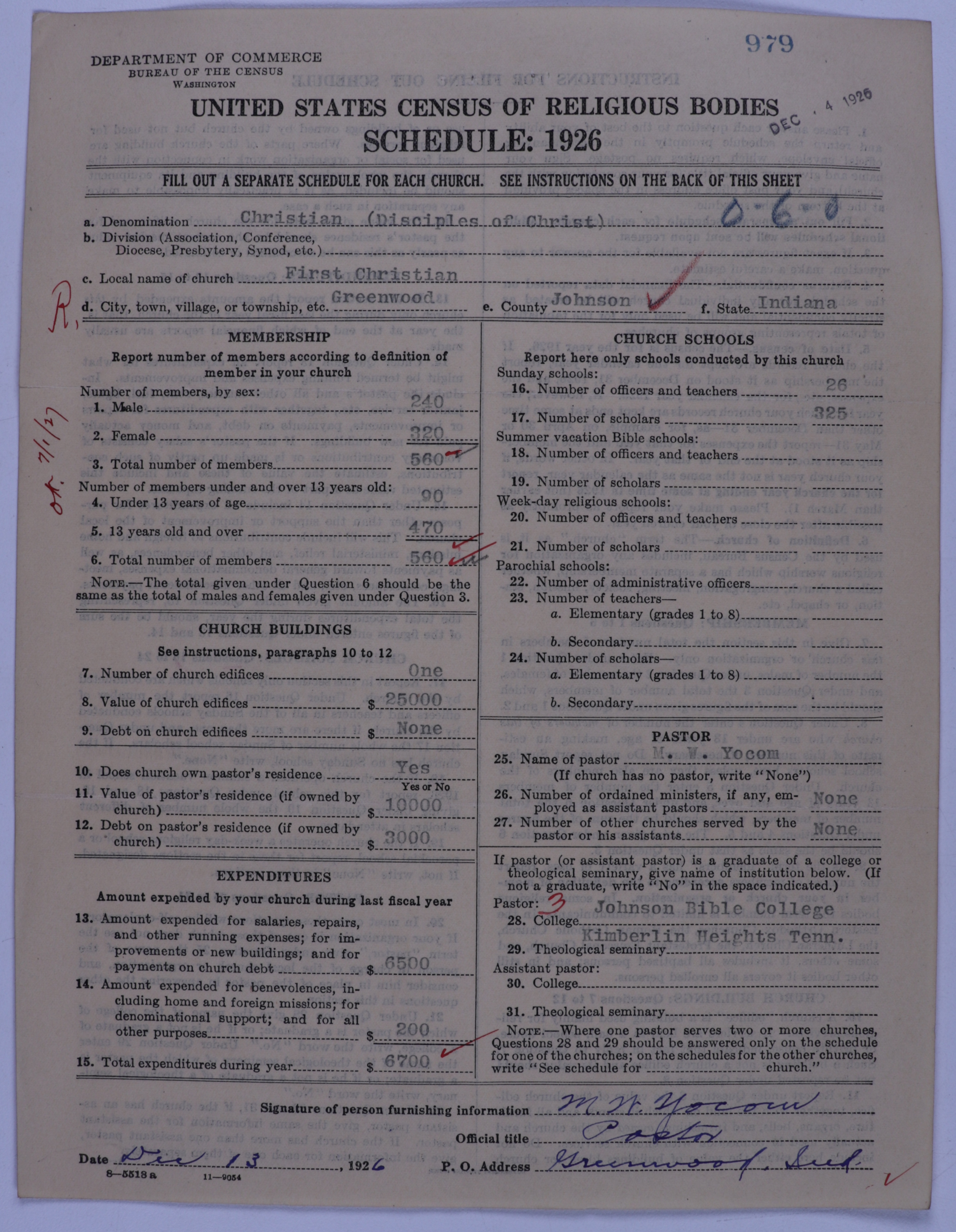 - Disciples of Christ: 979