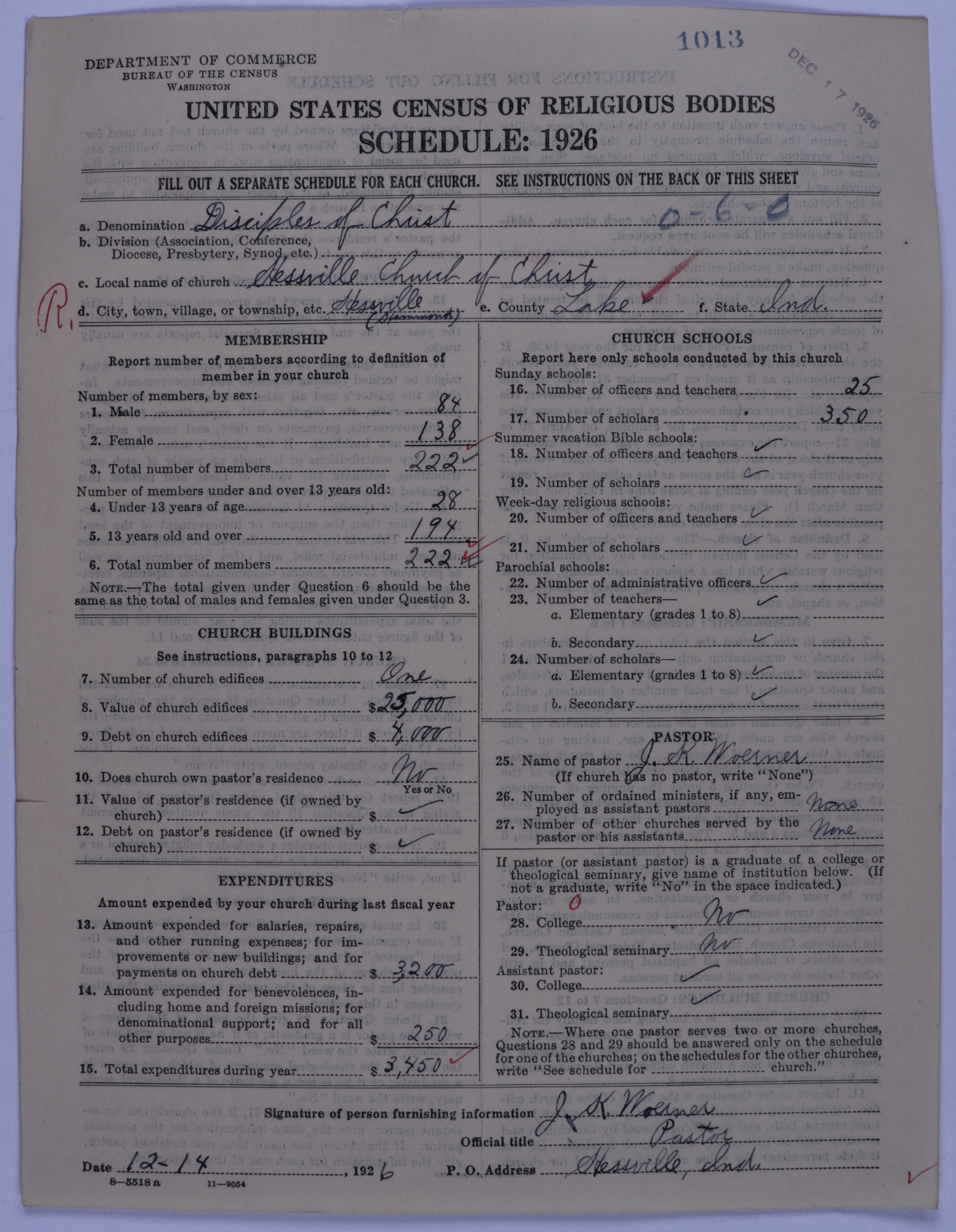 - Disciples of Christ: 1013