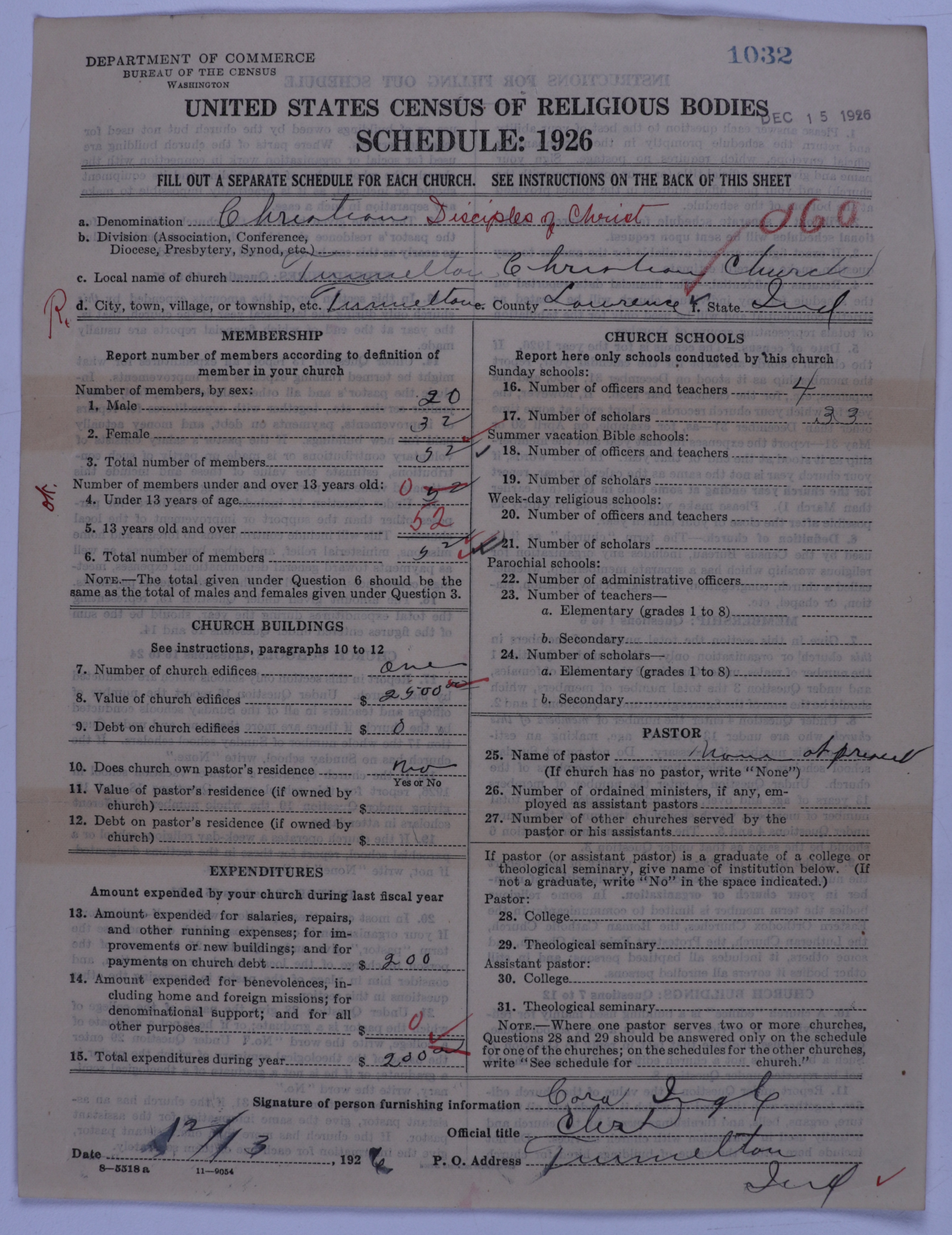 - Disciples of Christ: 1032