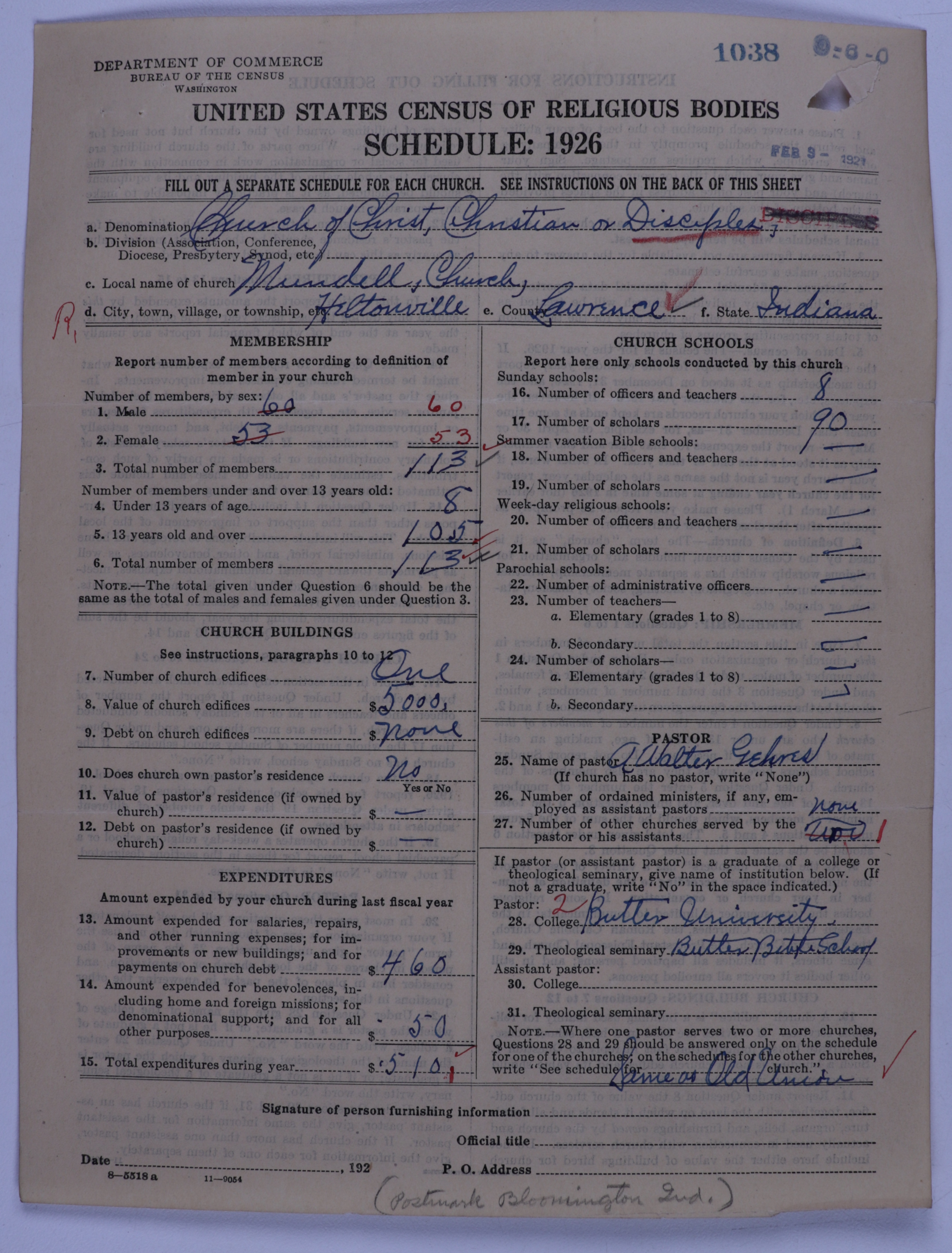 - Disciples of Christ: 1038