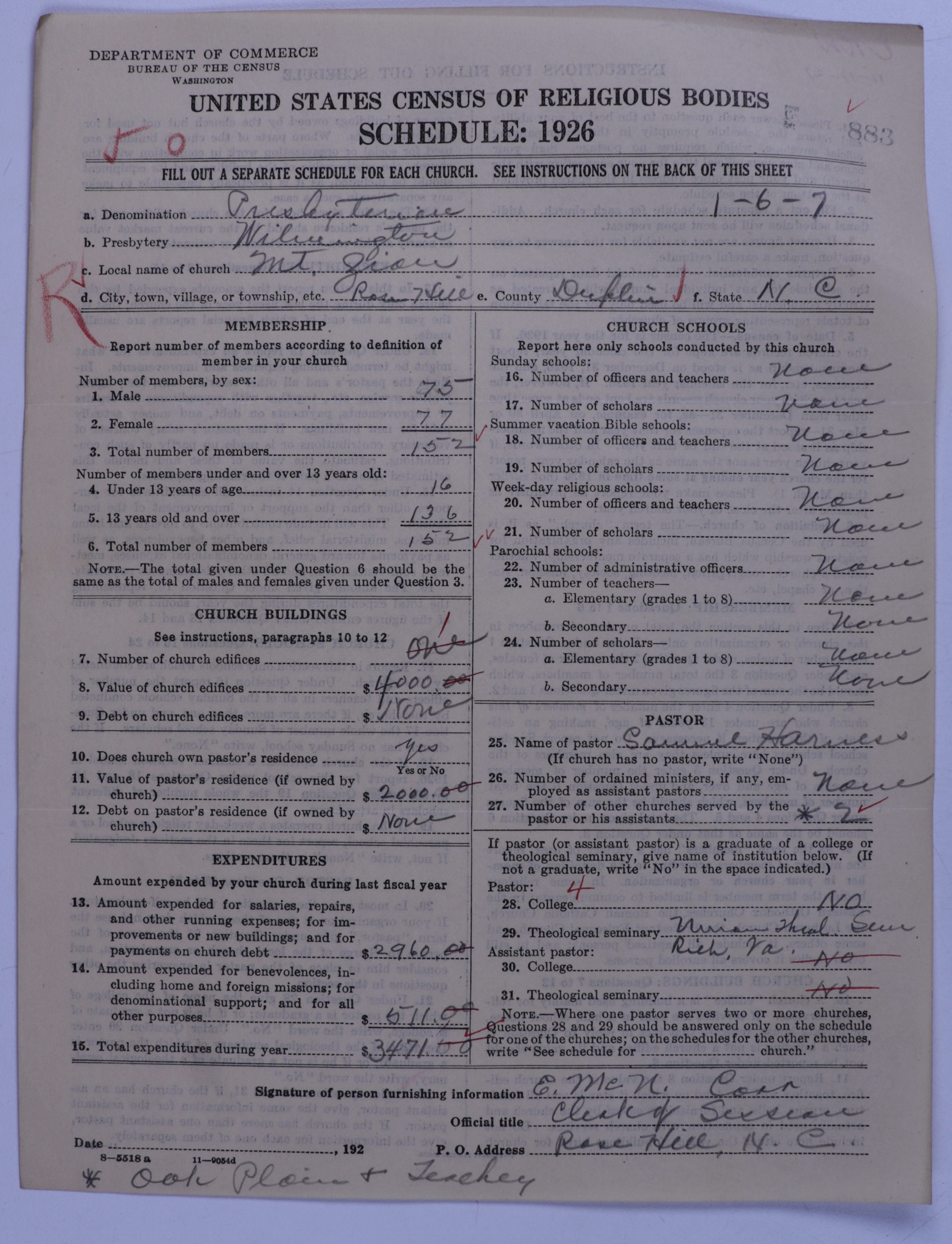 - Presbyterian Church in the United States: 883