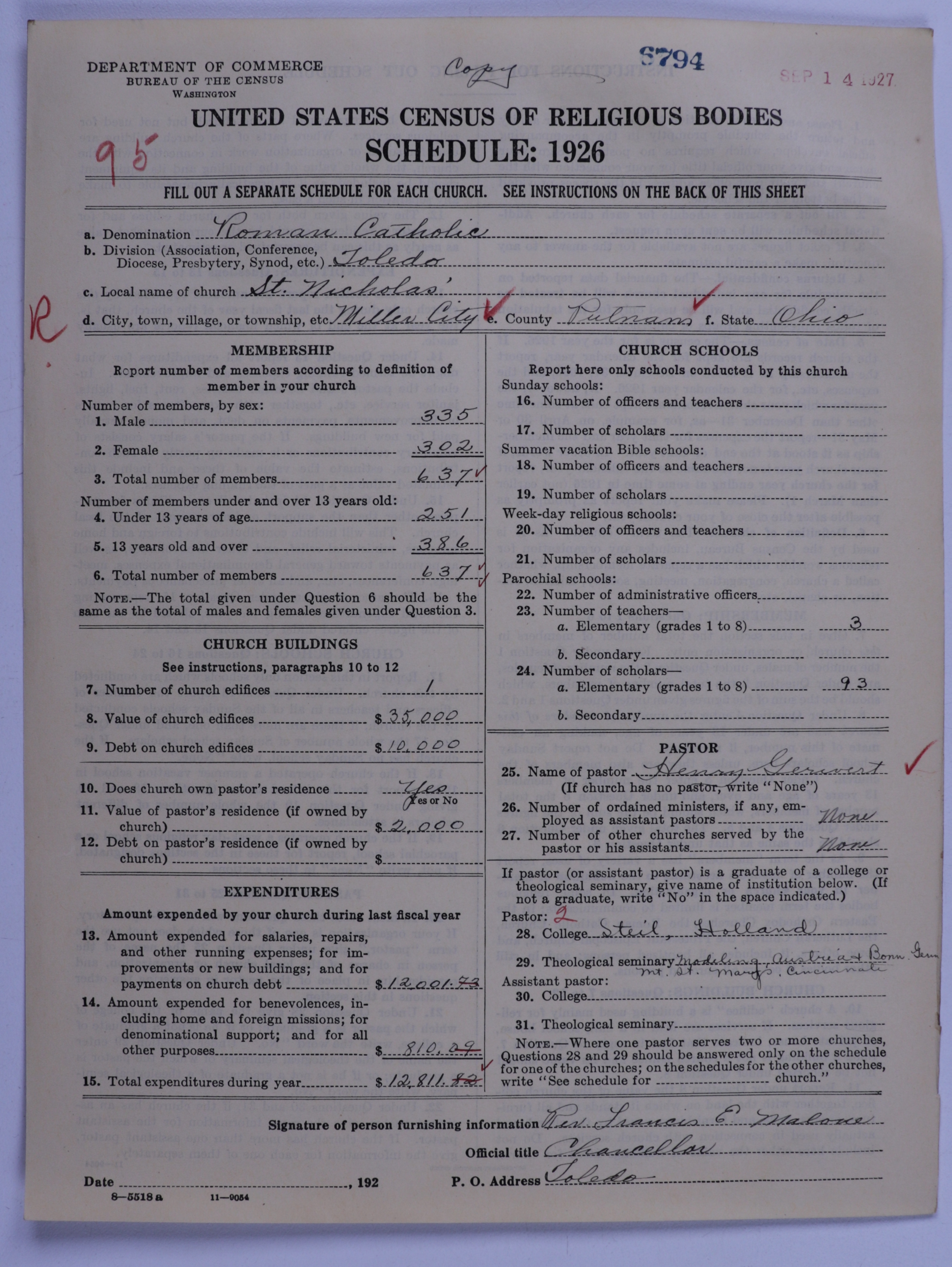 - Roman Catholic Church: 6794