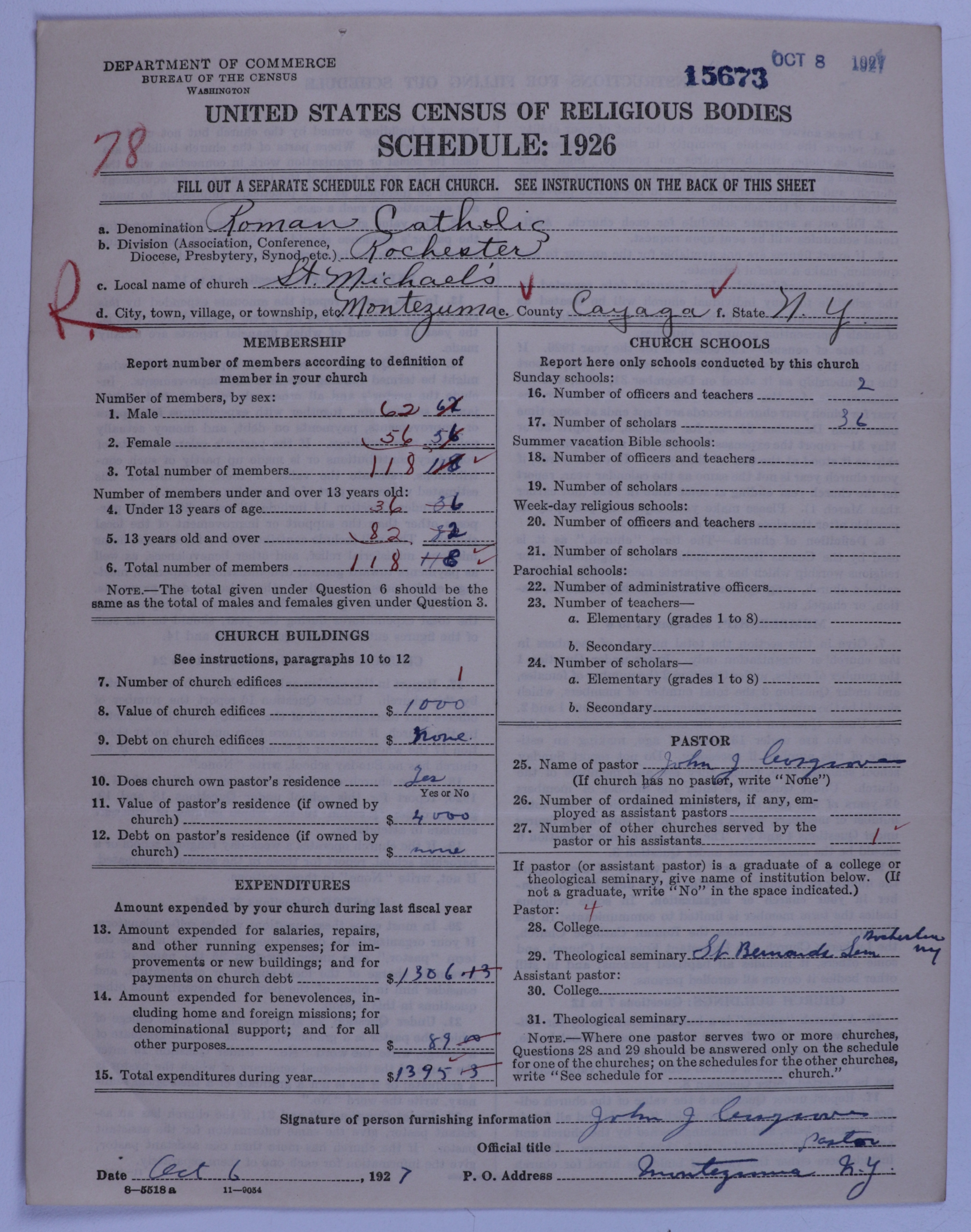 - Roman Catholic Church: 15673