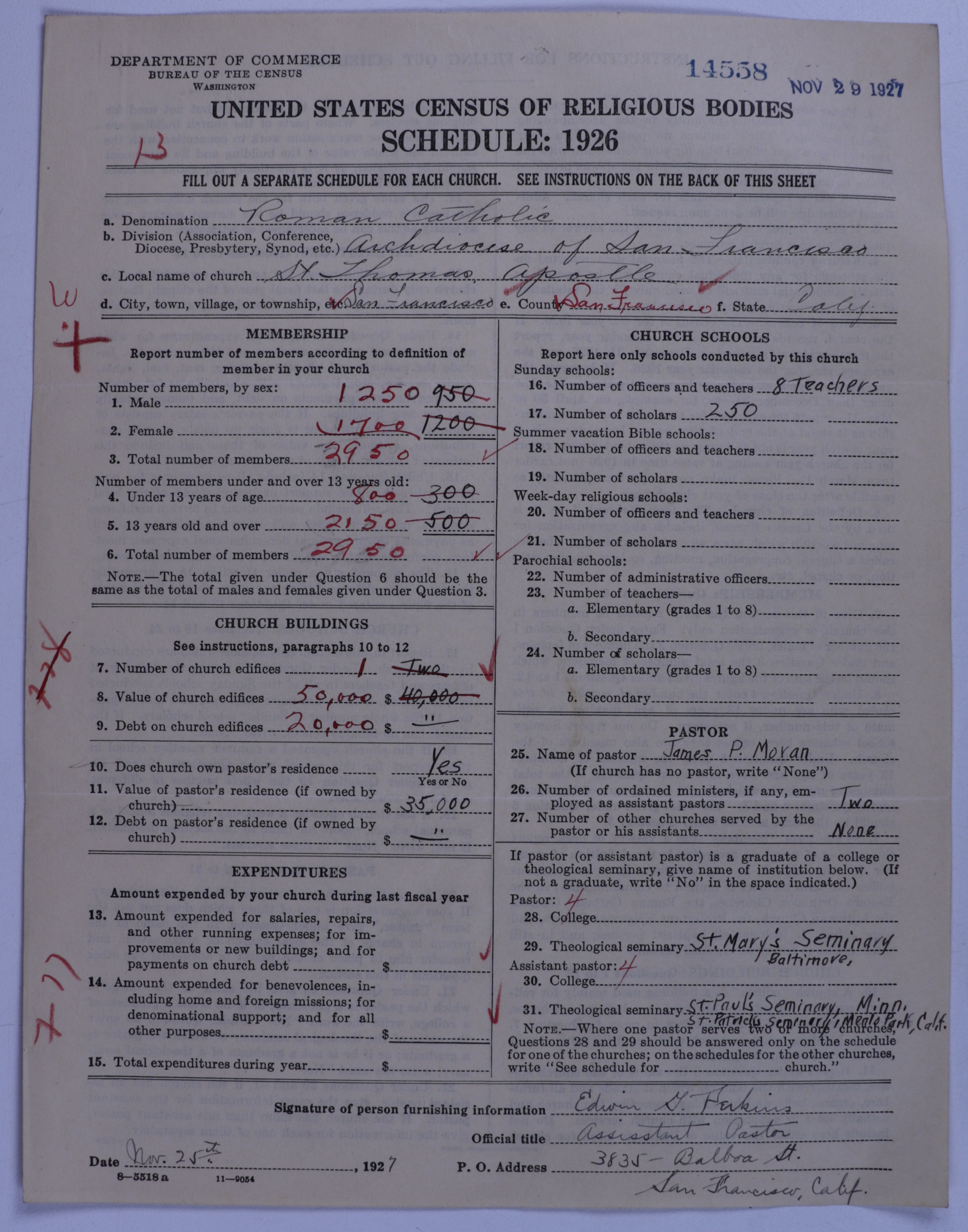 - Roman Catholic Church: 14558