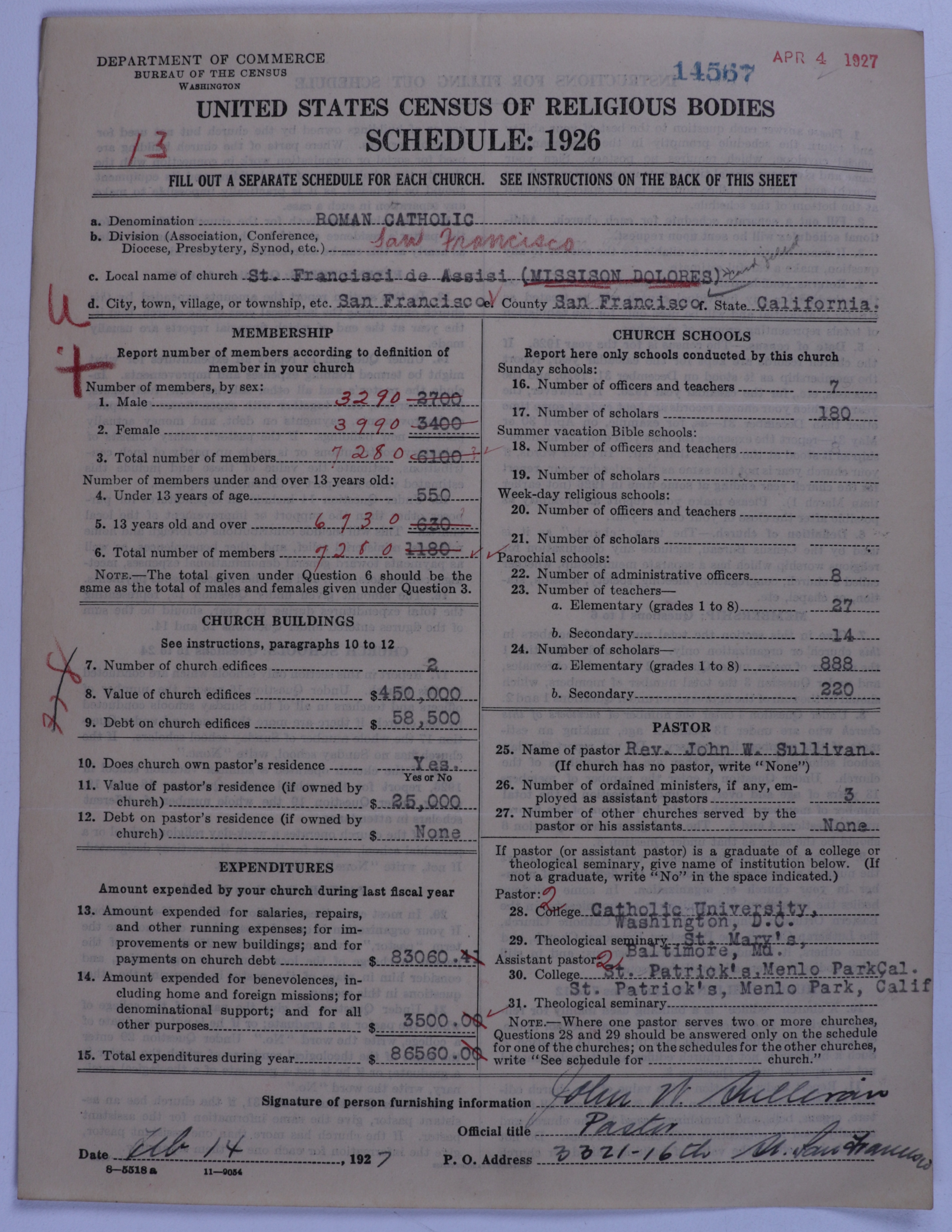 - Roman Catholic Church: 14567