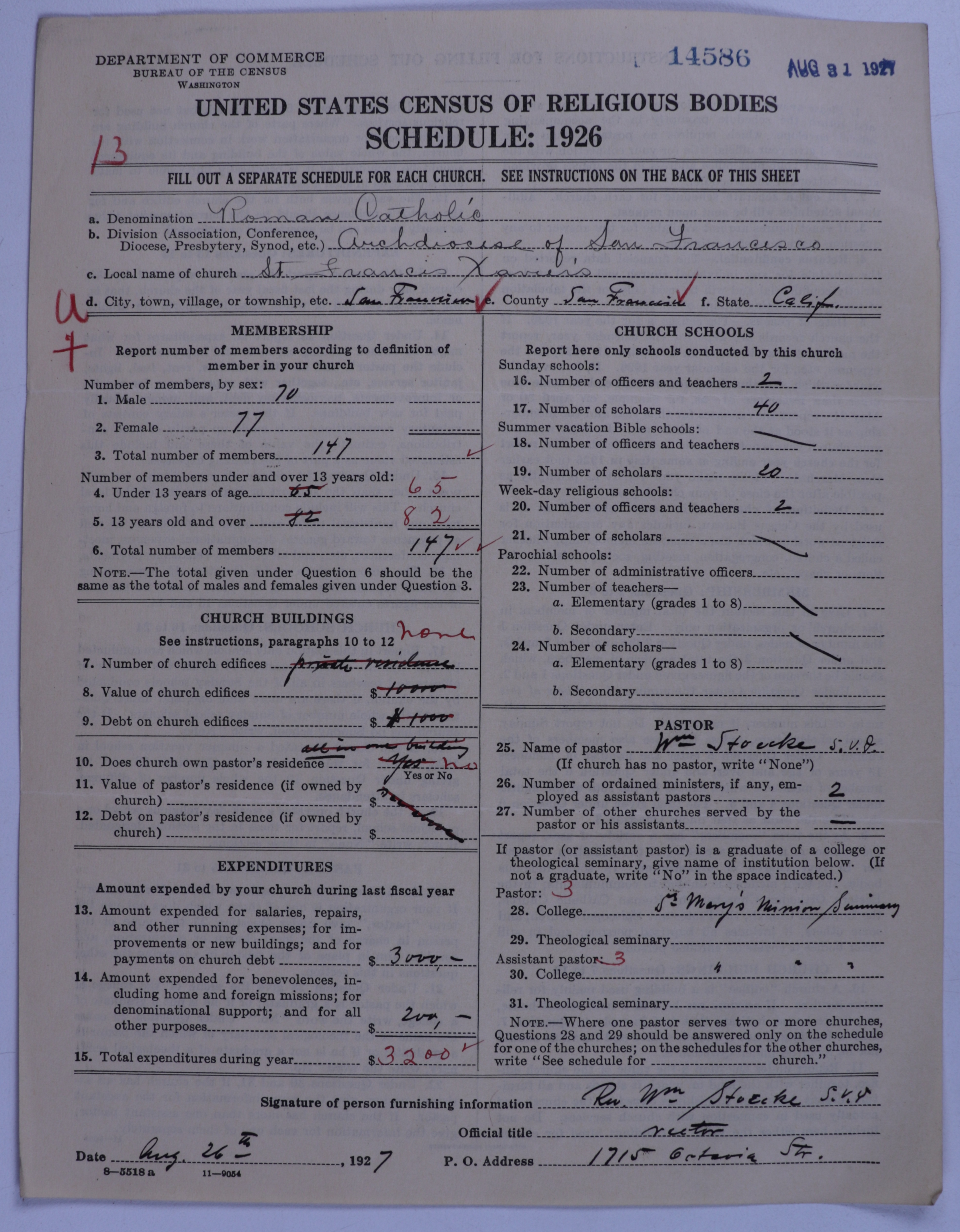- Roman Catholic Church: 14586