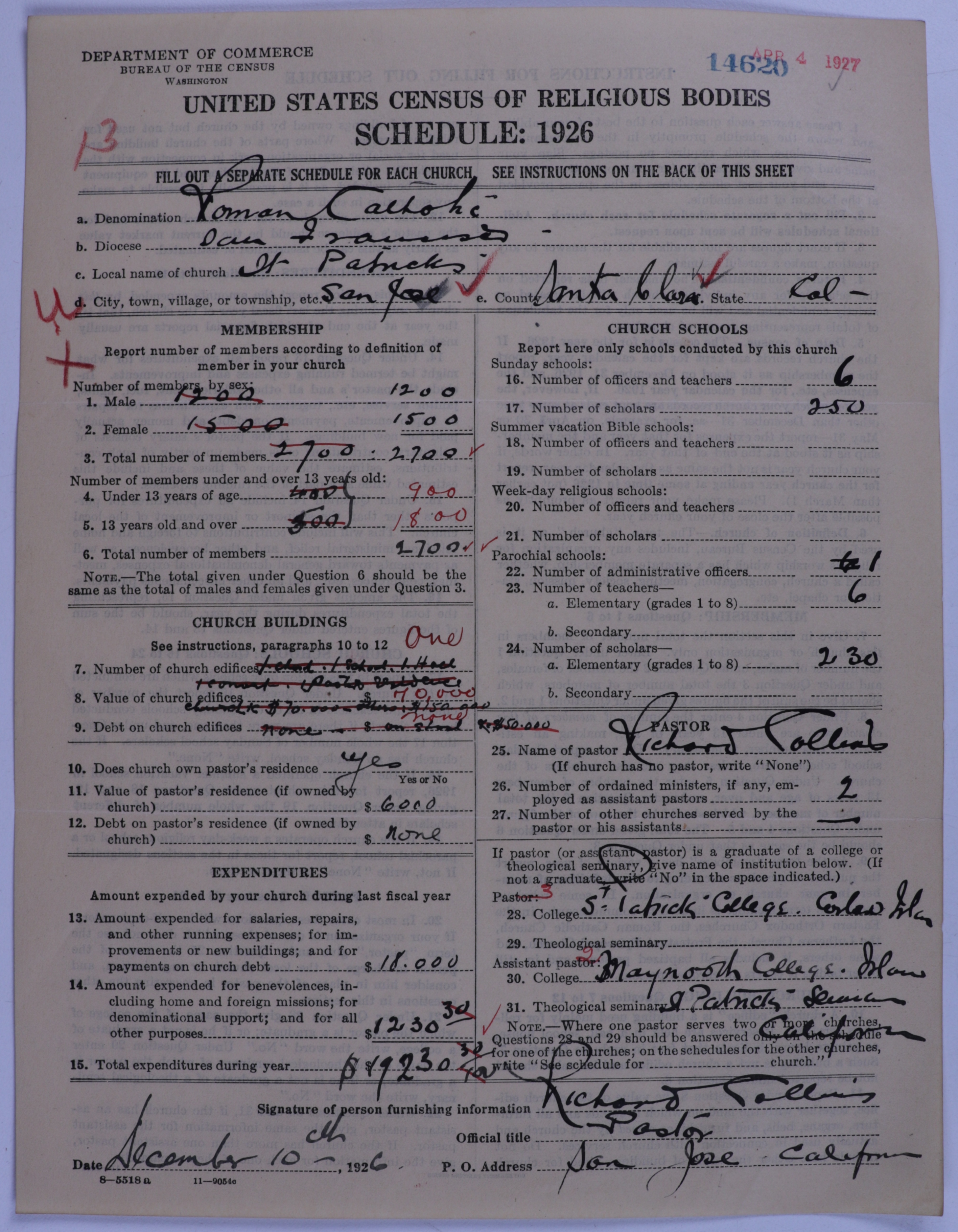 - Roman Catholic Church: 14620