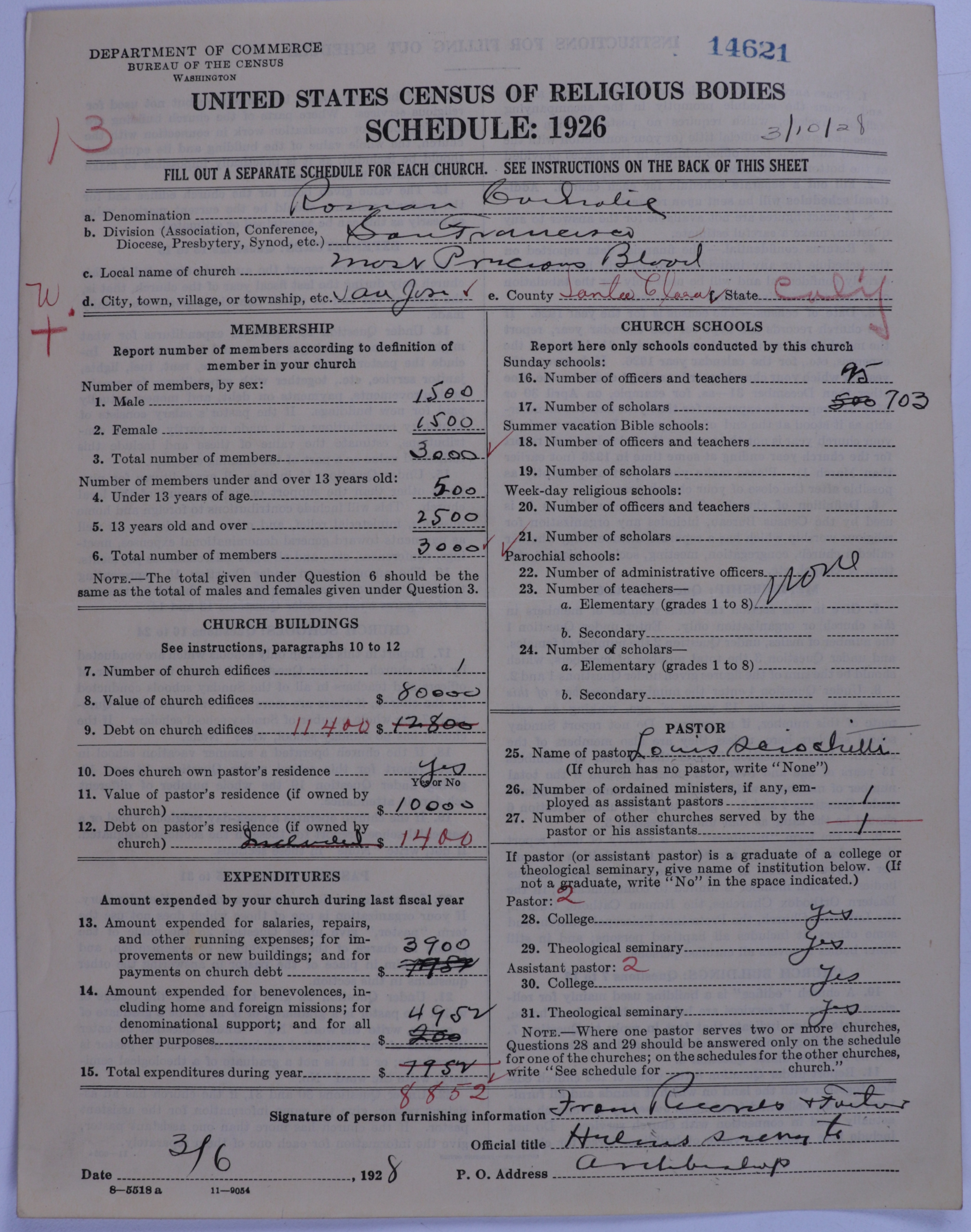 - Roman Catholic Church: 14621