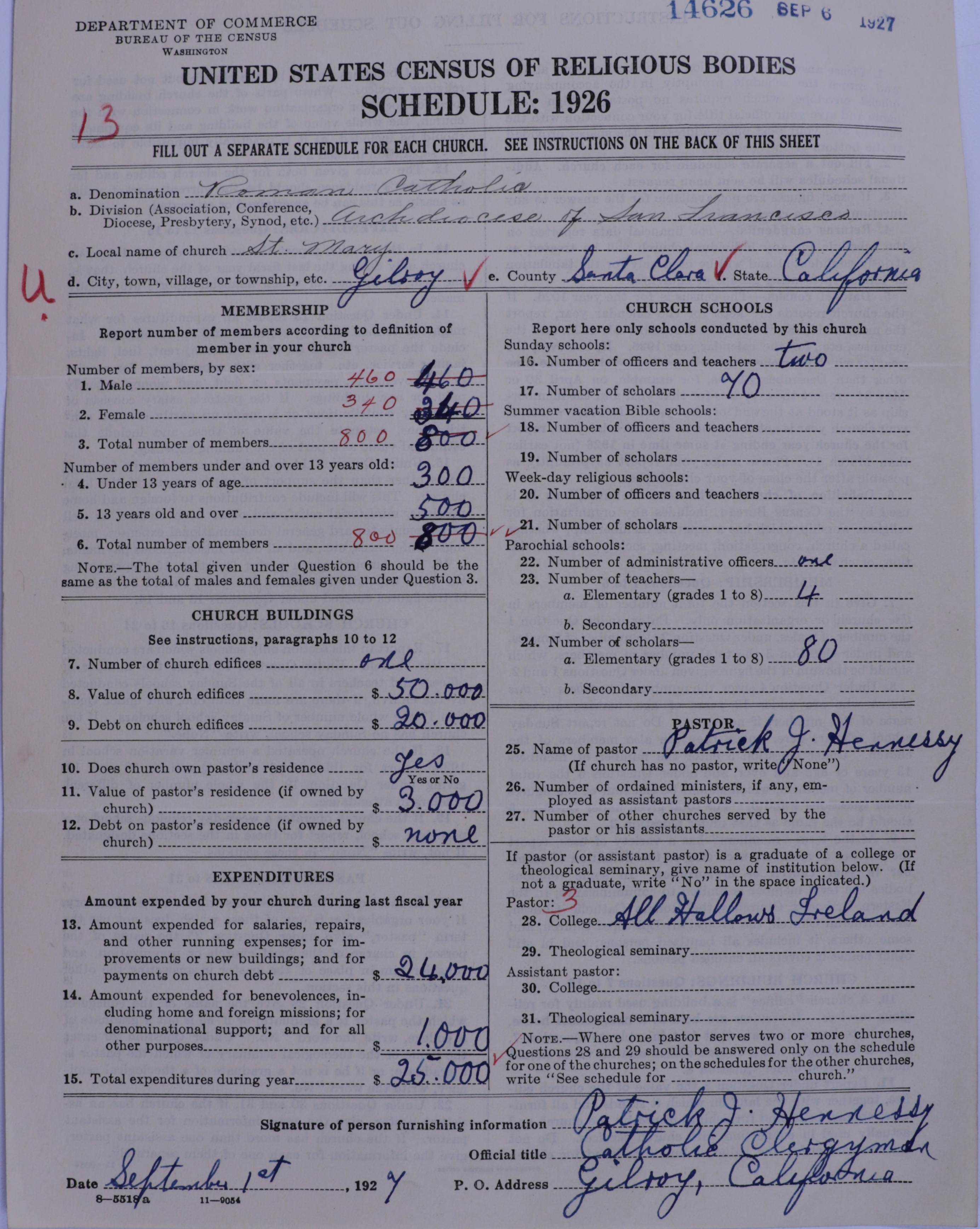 - Roman Catholic Church: 14262