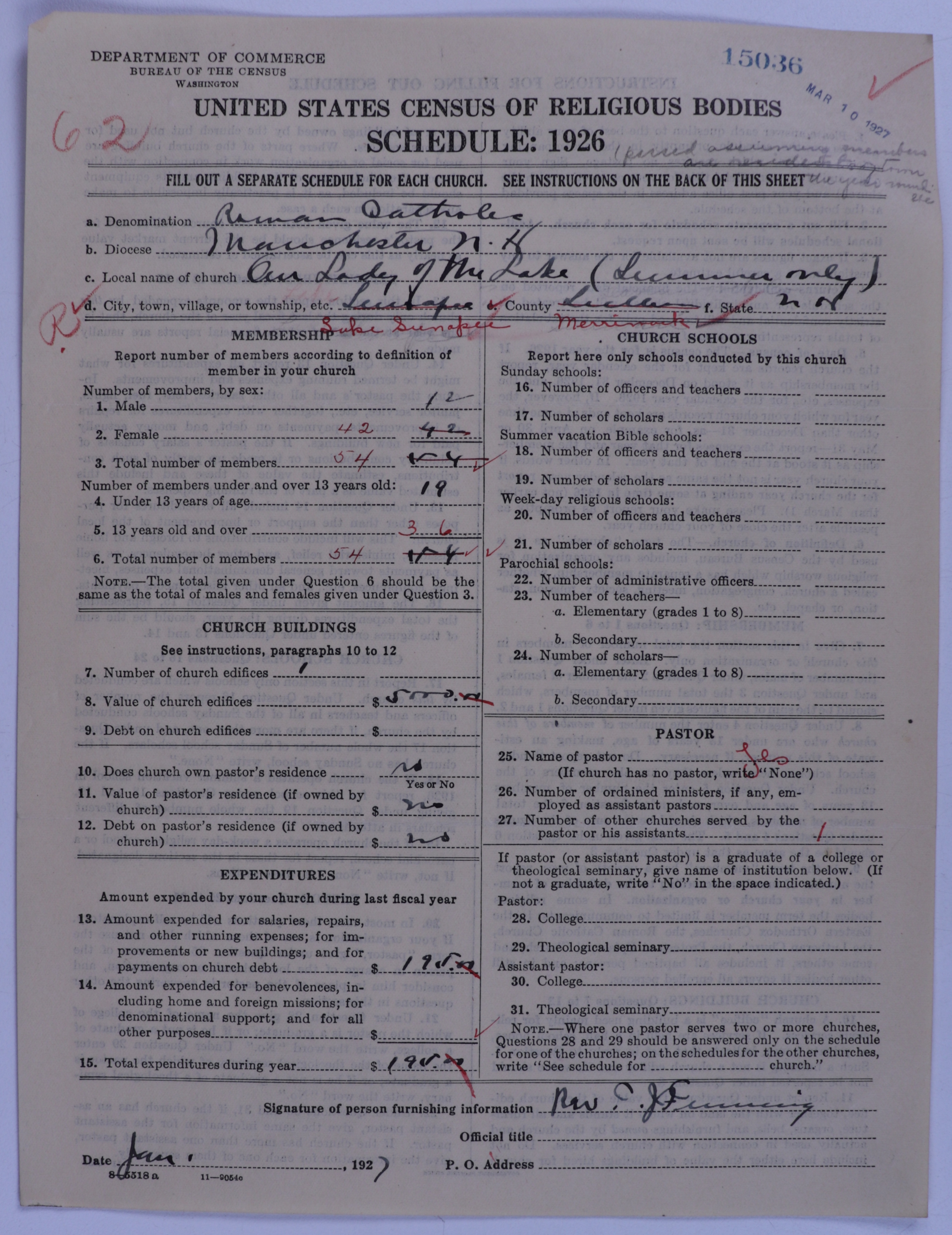 - Roman Catholic Church: 15036