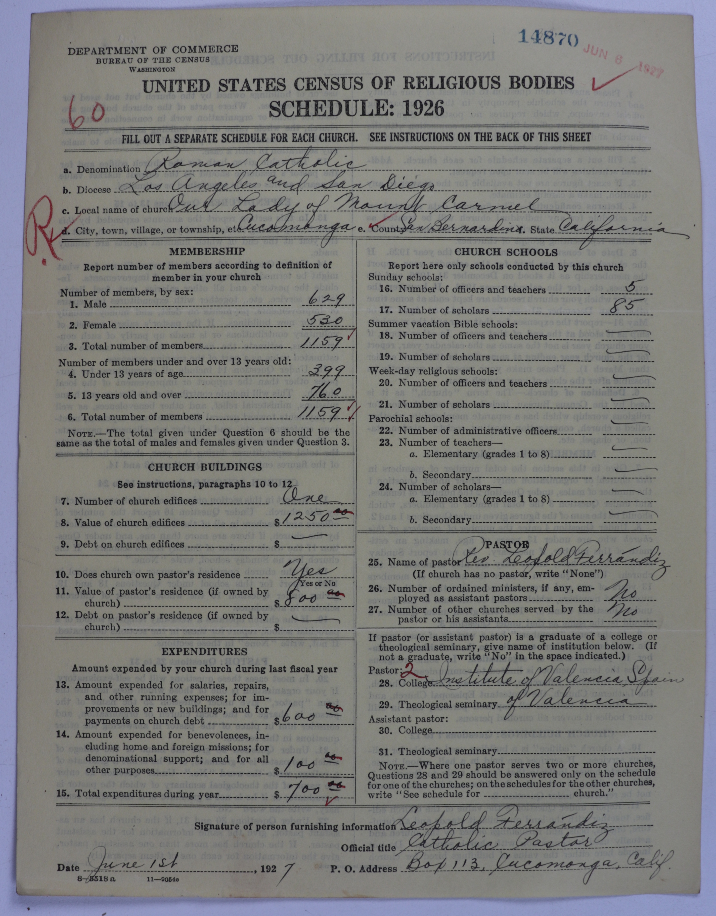 - Roman Catholic Church: 14870