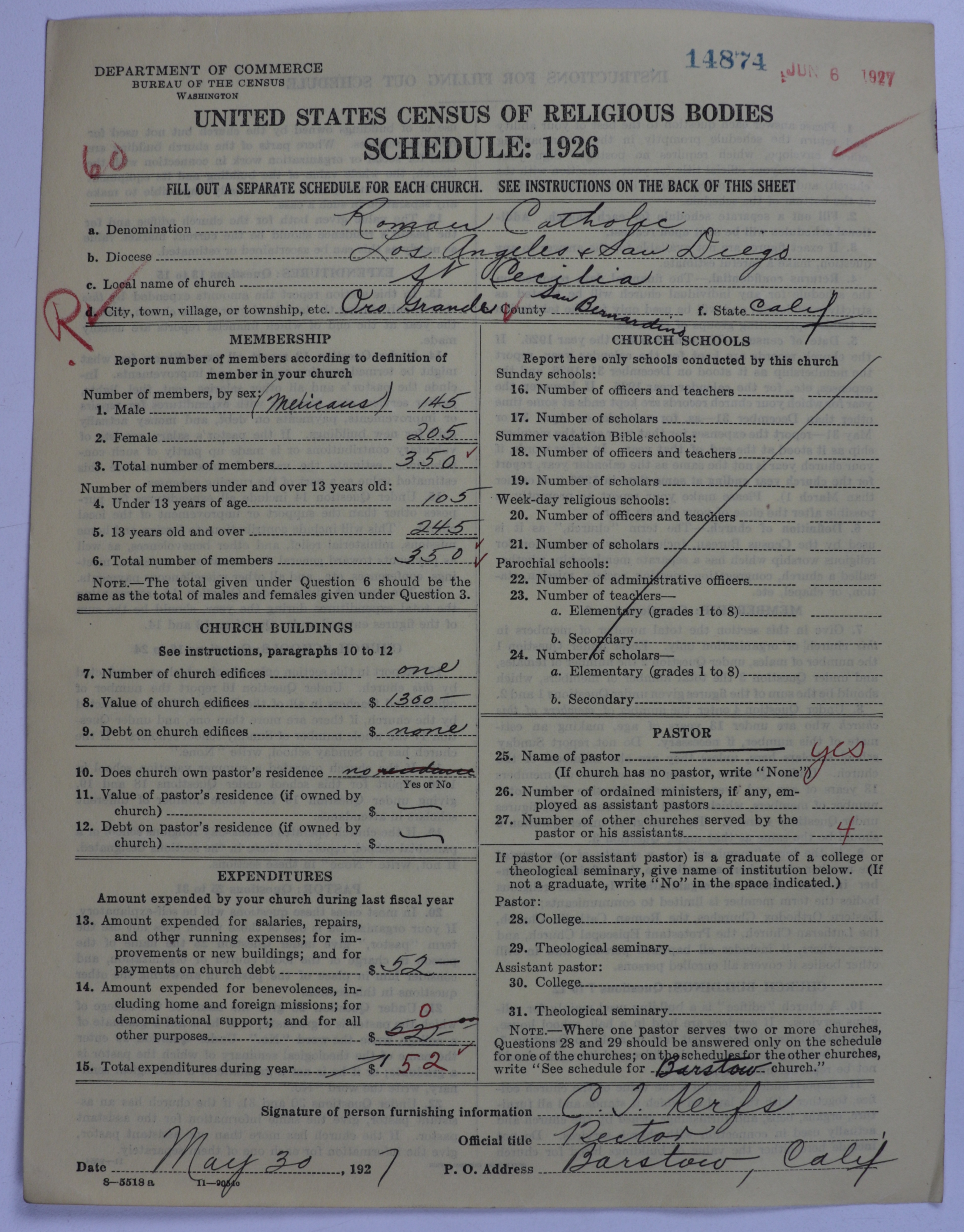 - Roman Catholic Church: 14874