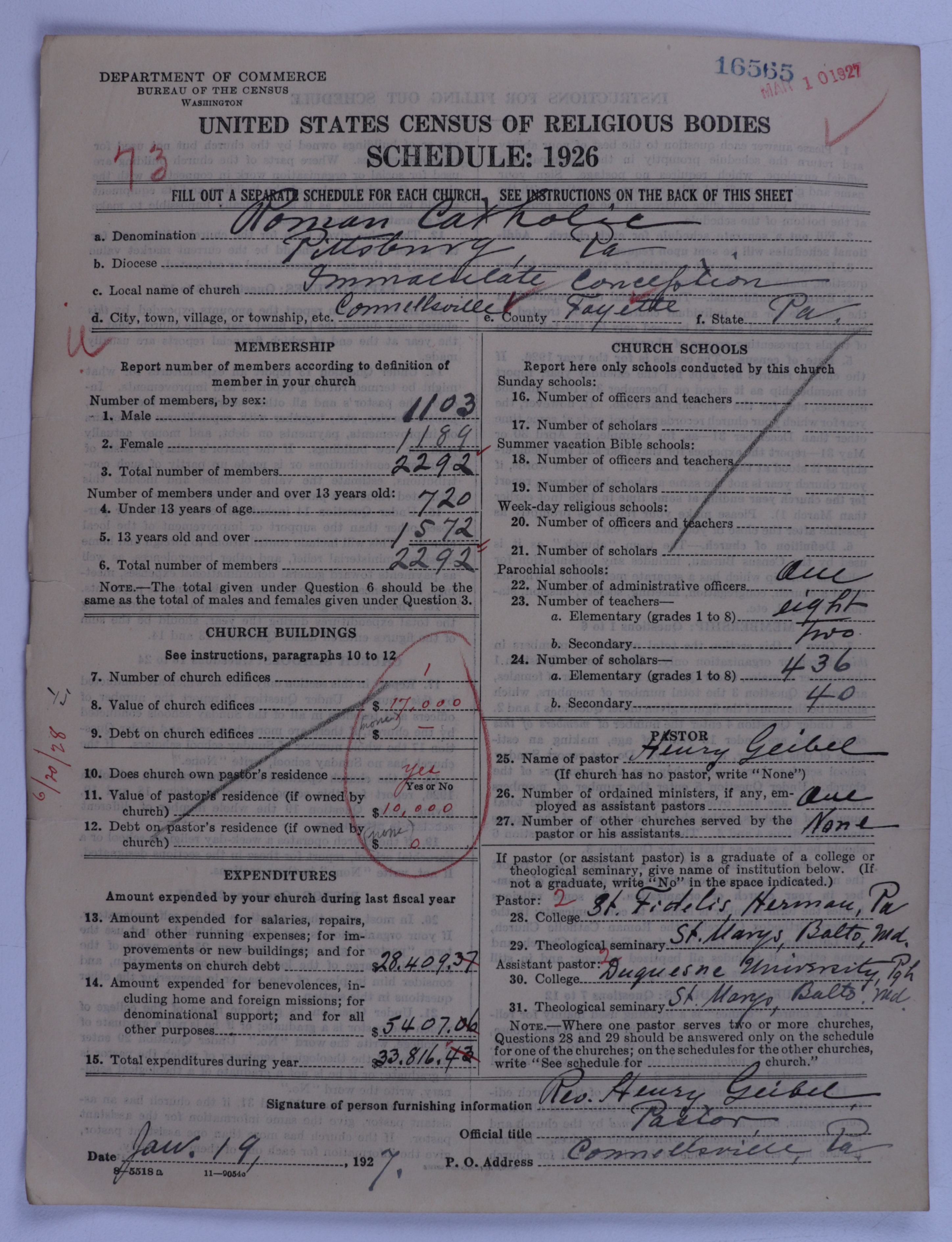- Roman Catholic Church: 16565