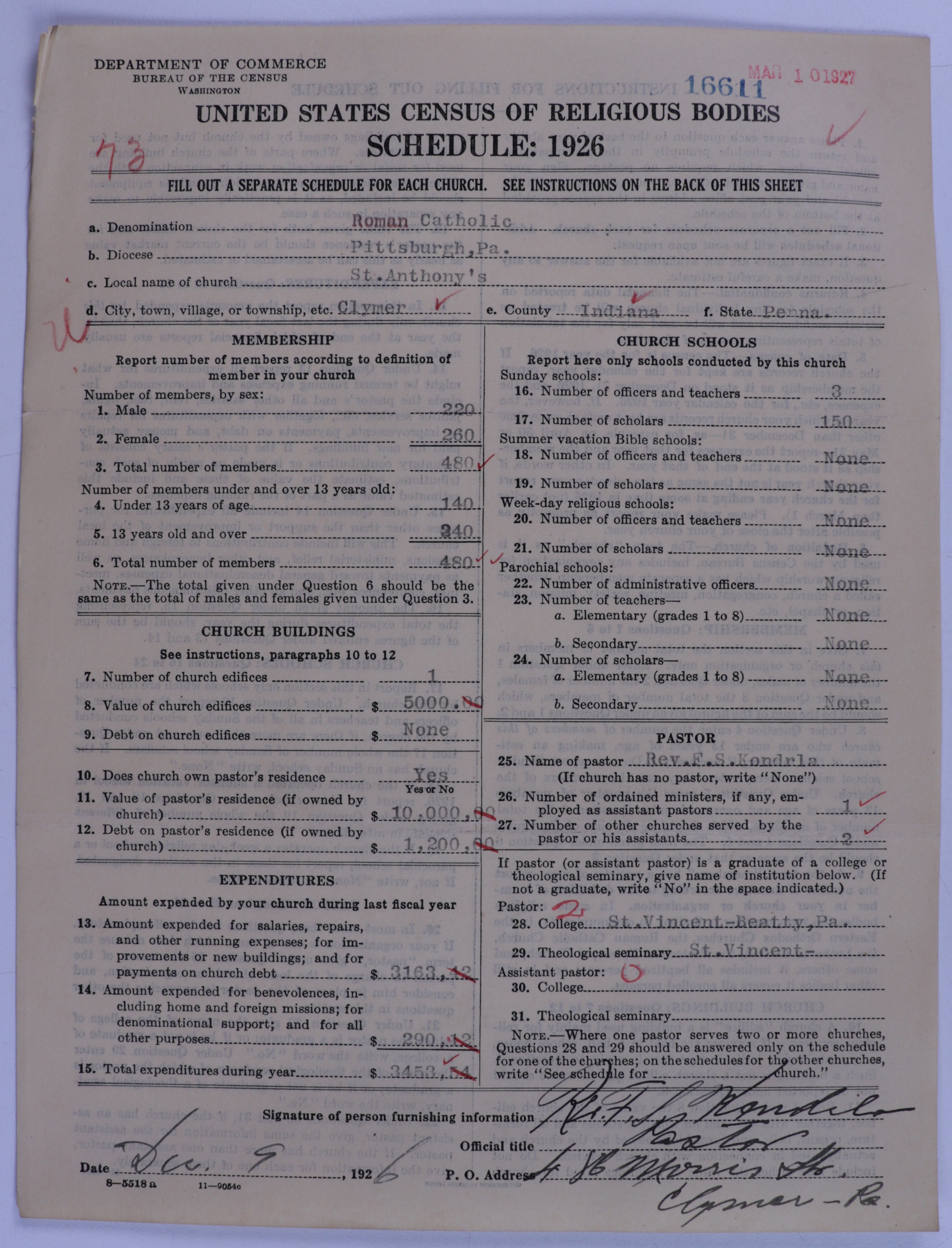 - Roman Catholic Church: 16611