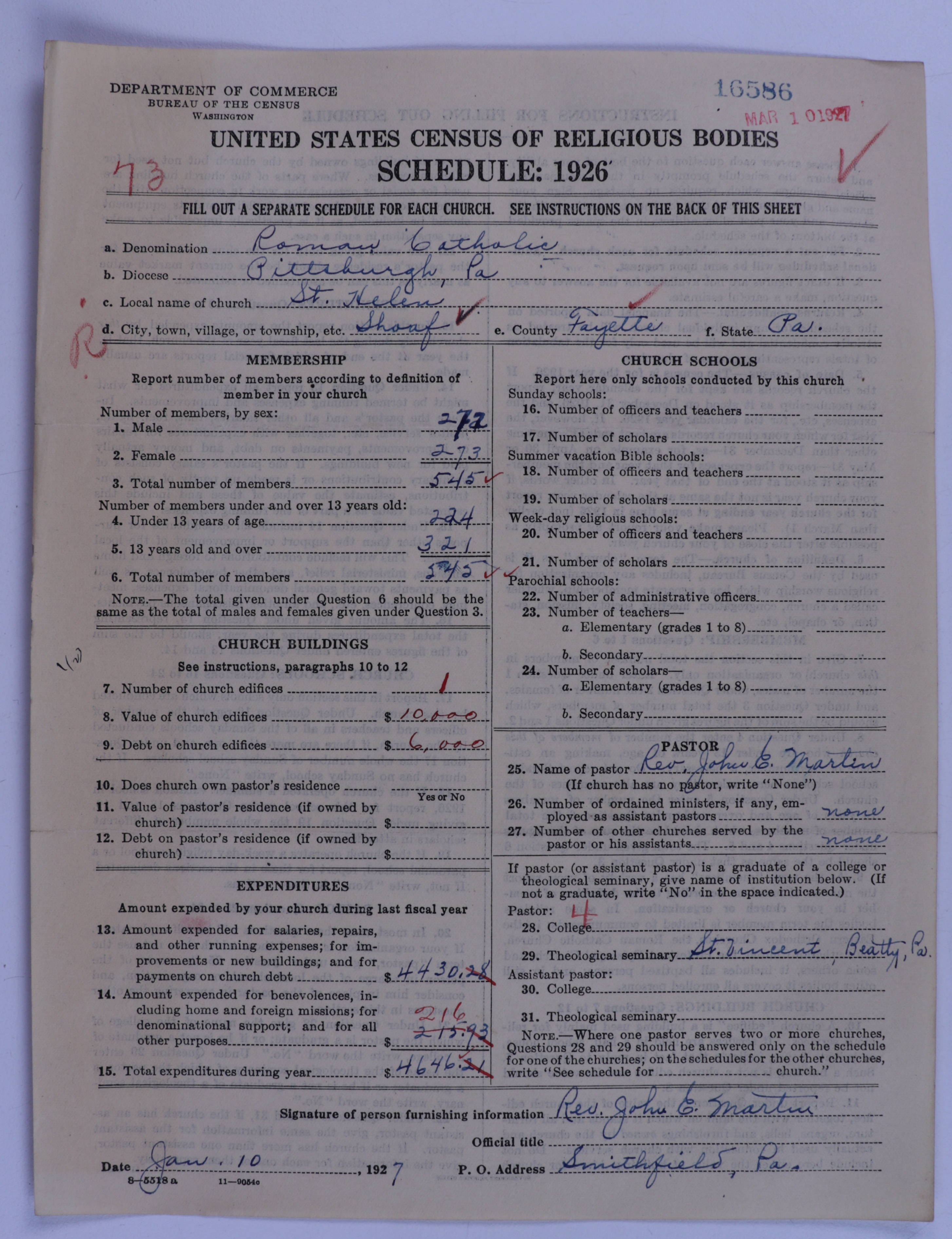 - Roman Catholic Church: 16586