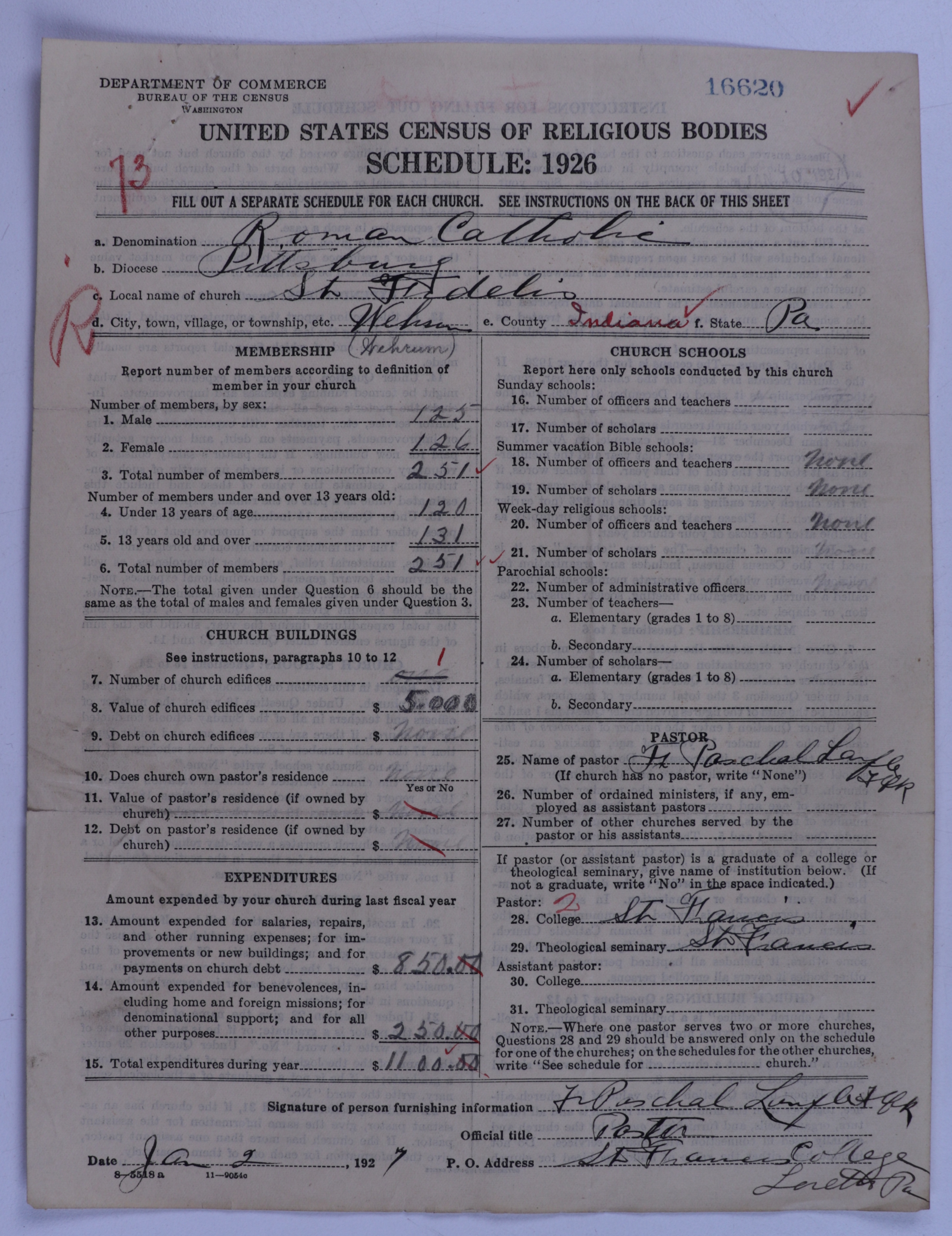 - Roman Catholic Church: 16620