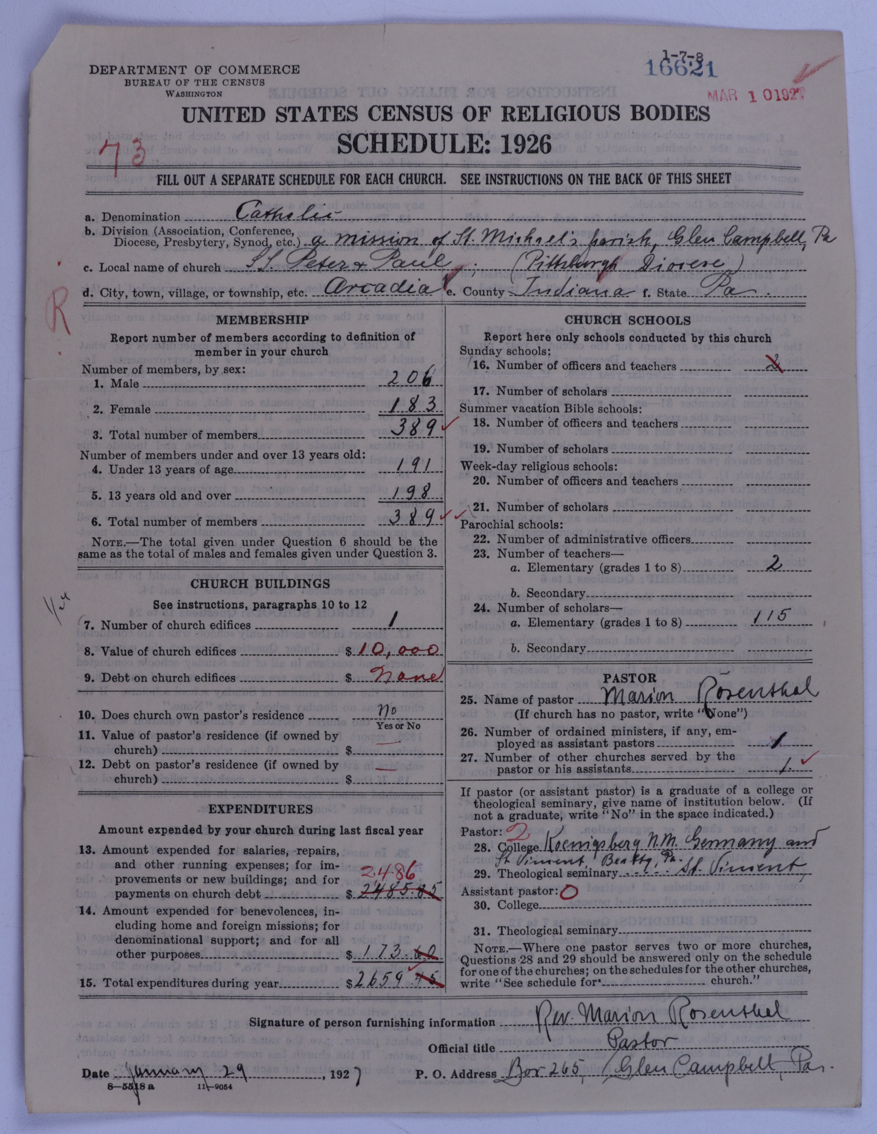 - Roman Catholic Church: 16621