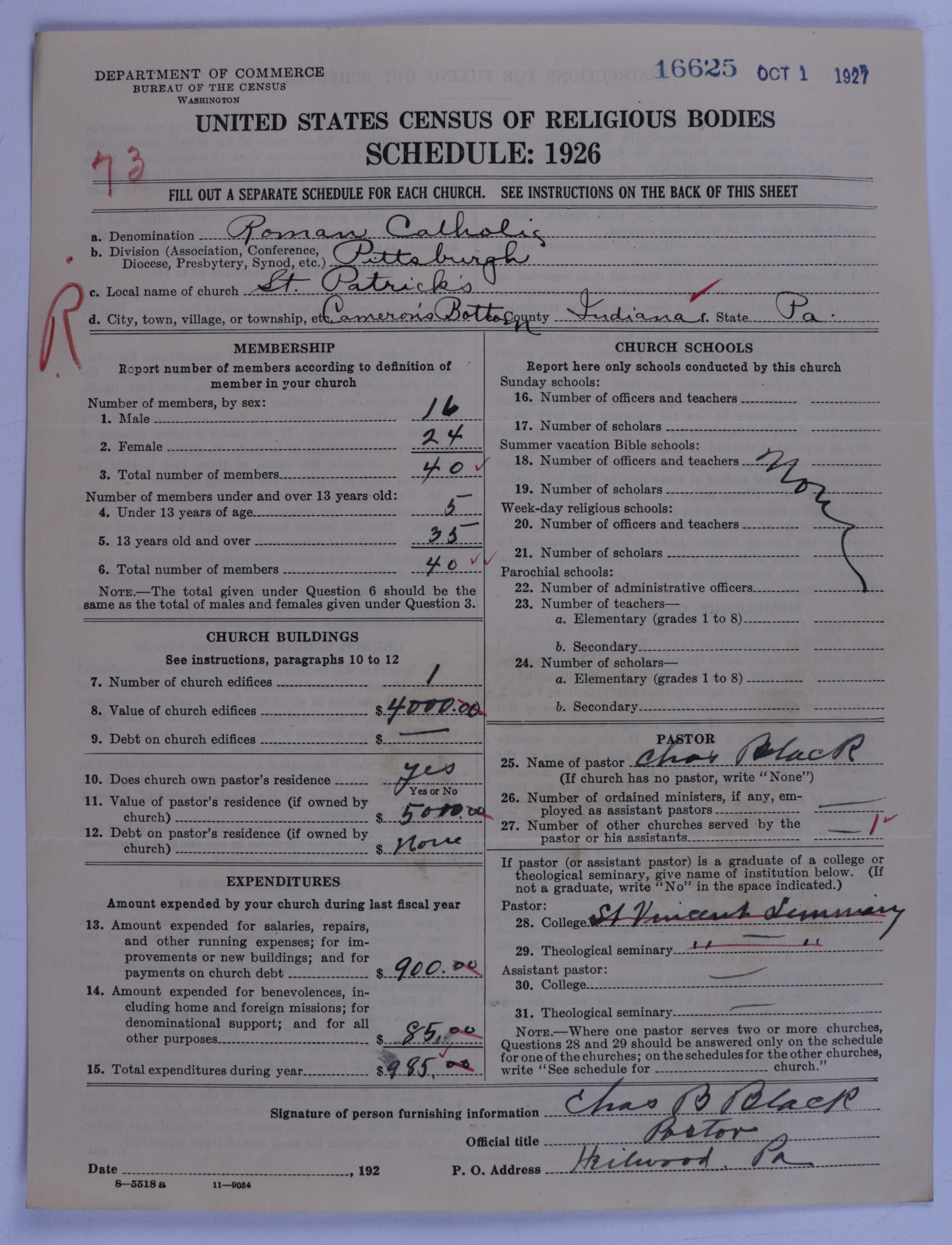 - Roman Catholic Church: 16625