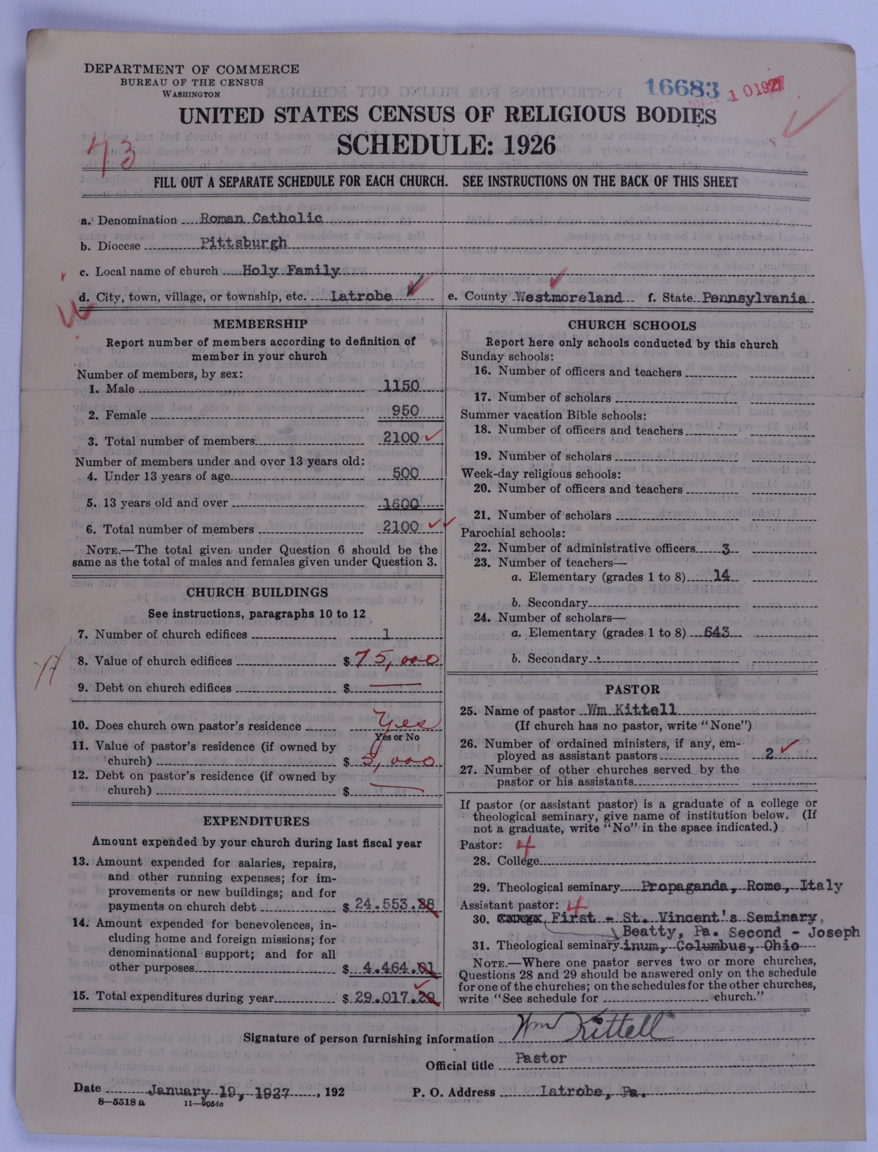 - Roman Catholic Church: 16683