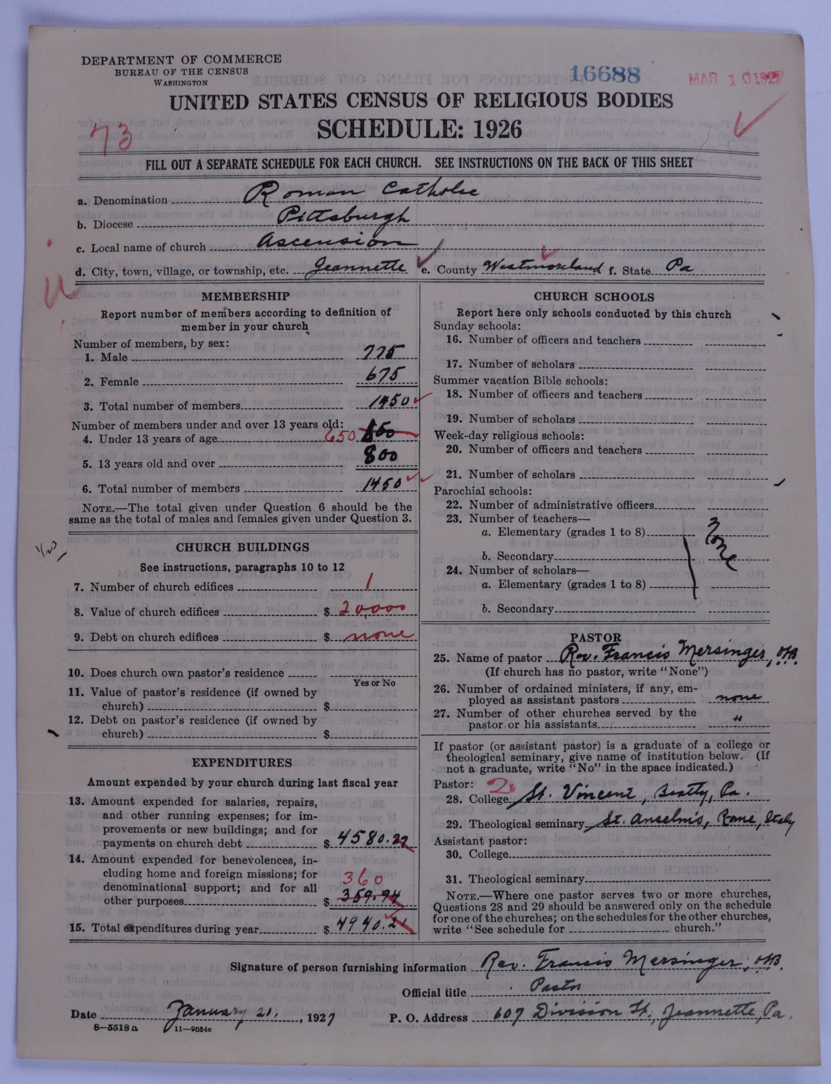 - Roman Catholic Church: 16688