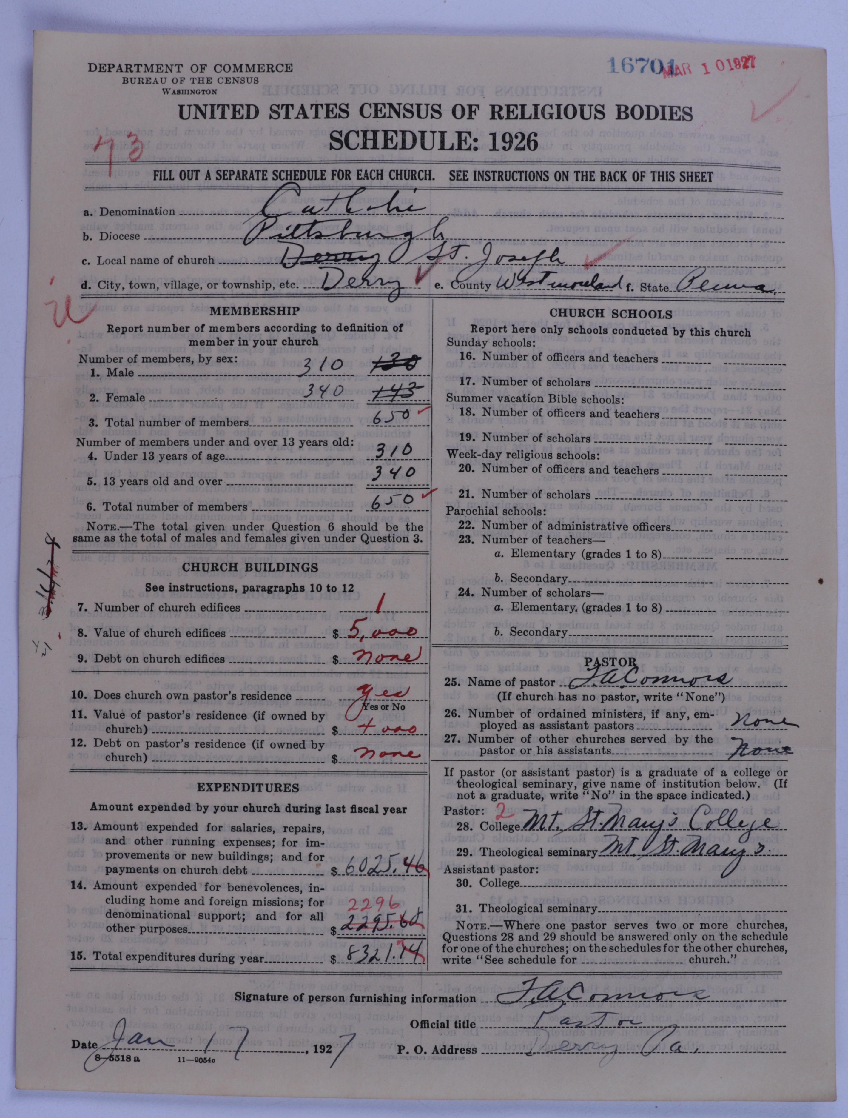 - Roman Catholic Church: 16701