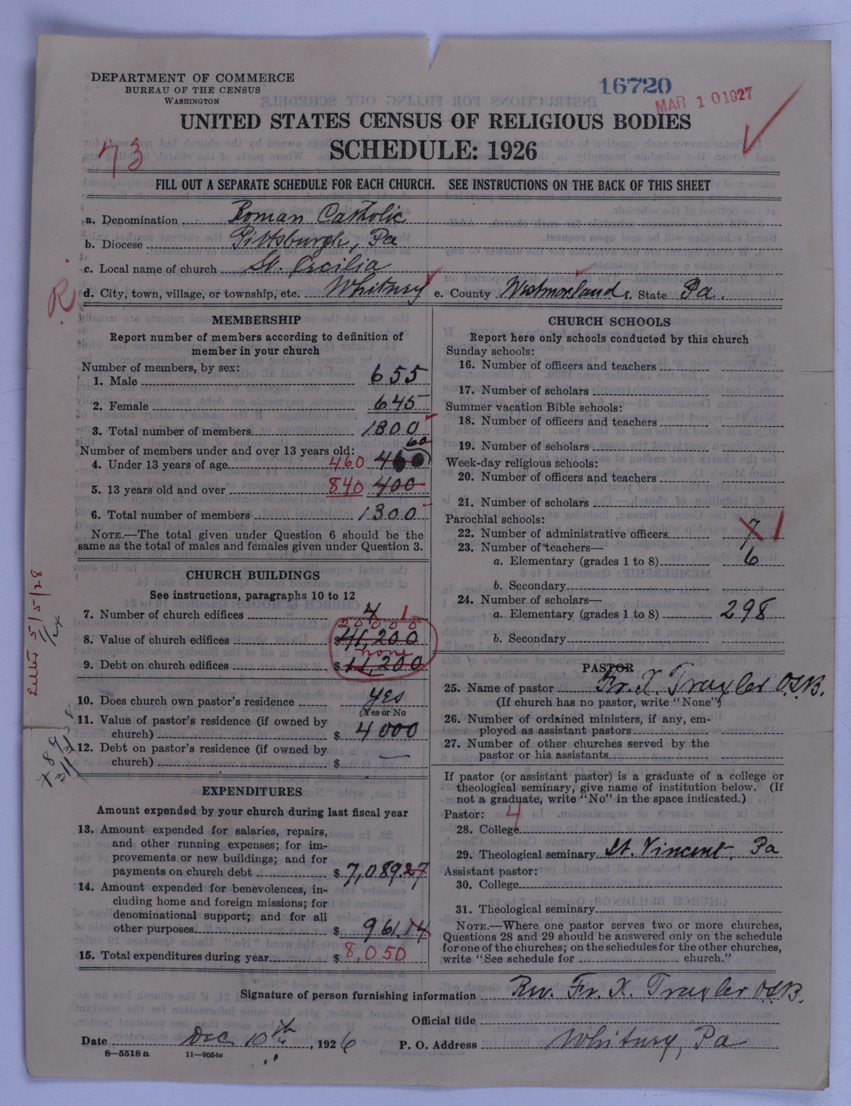 - Roman Catholic Church: 16720