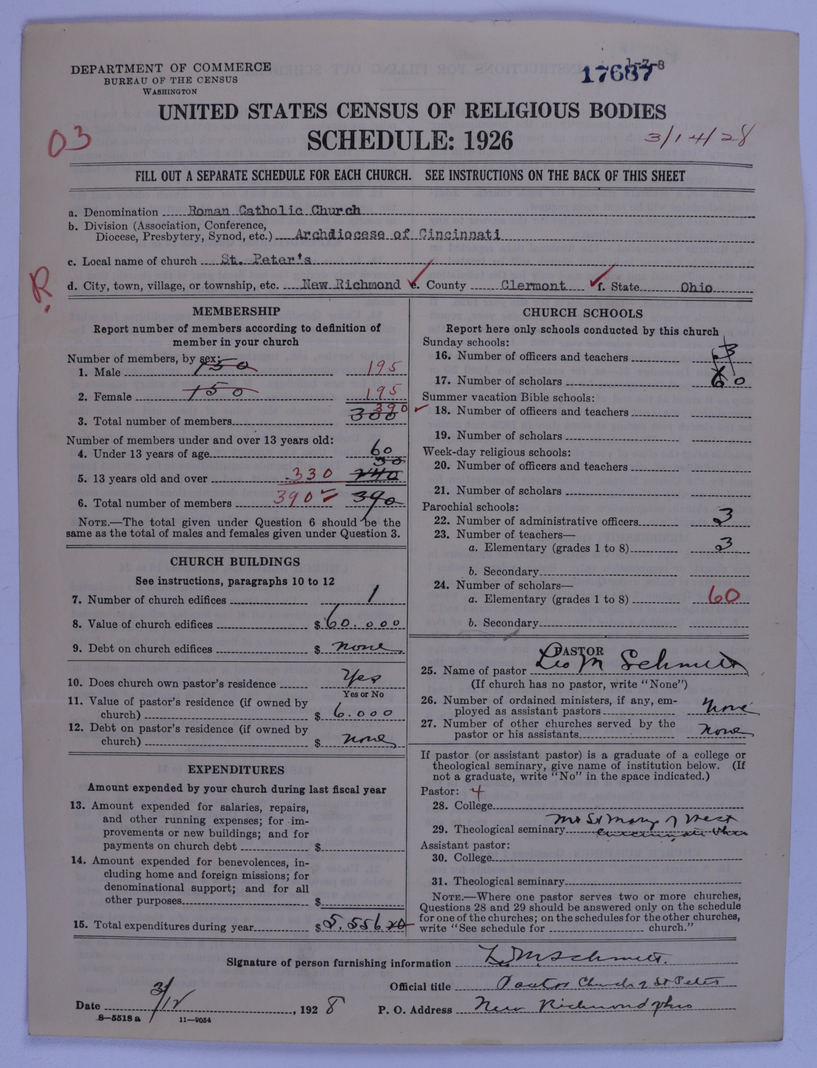 - Roman Catholic Church: 17687